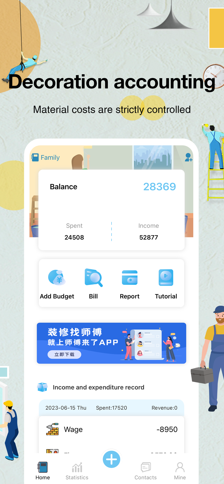 "Decoration bookkeeping book" whether you are a new house, second-hand house decoration; Or hard, soft interior decoration, can generate a decoration budget table, compare the decoration budget and actual expenditure at any time, and dynamically adjust the decoration list to achieve the effect of controlling the budget.