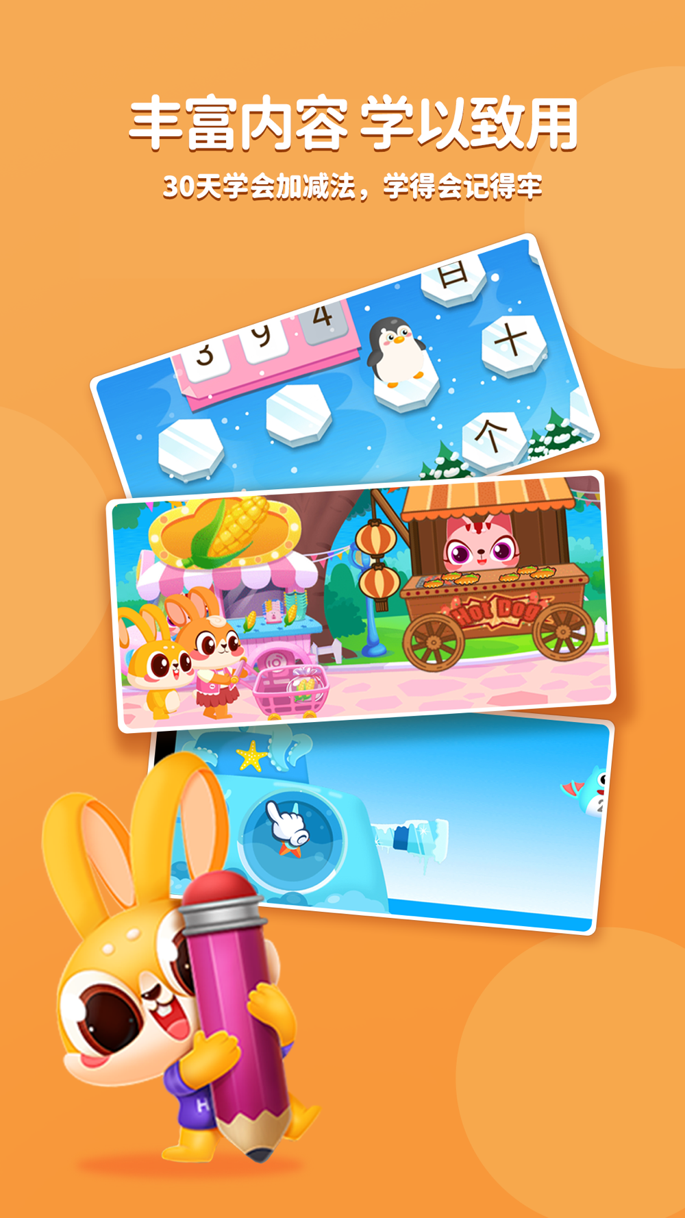 兔小萌数学启蒙充分研究了3-8岁幼儿到小学阶段孩子数学学习与发展的基本规律和特点,激发孩子的学习兴趣,是一款适合幼儿园数学早教启蒙和小学加减法等学龄前、幼小衔接和小学数学的思维启蒙app