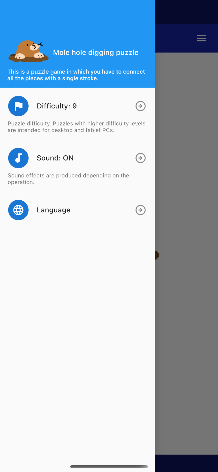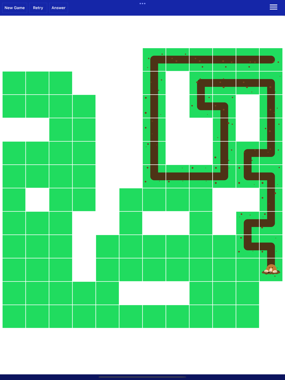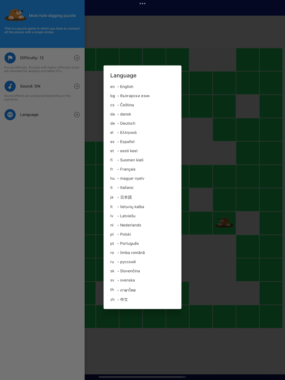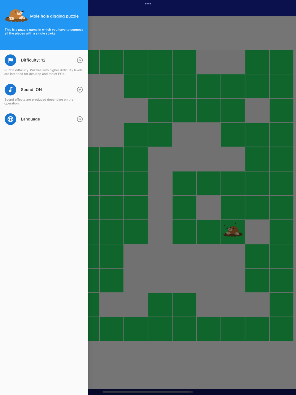 There are 17 difficulty levels. It is a brain puzzle that can be played as many times as you like. It is fun to watch the cute mole digging.