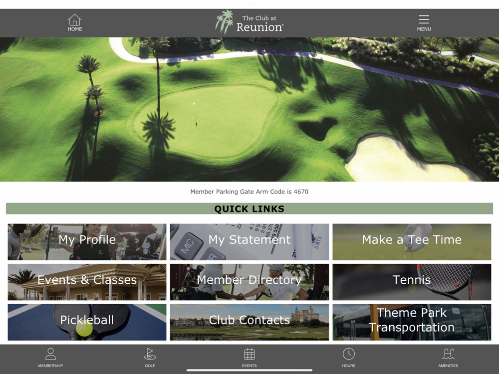 The Club at Reunion Resort app gives members the ability to; book tee times, view Club Calendar, make dining & calendar event event reservations, access member directory and update the member profile.