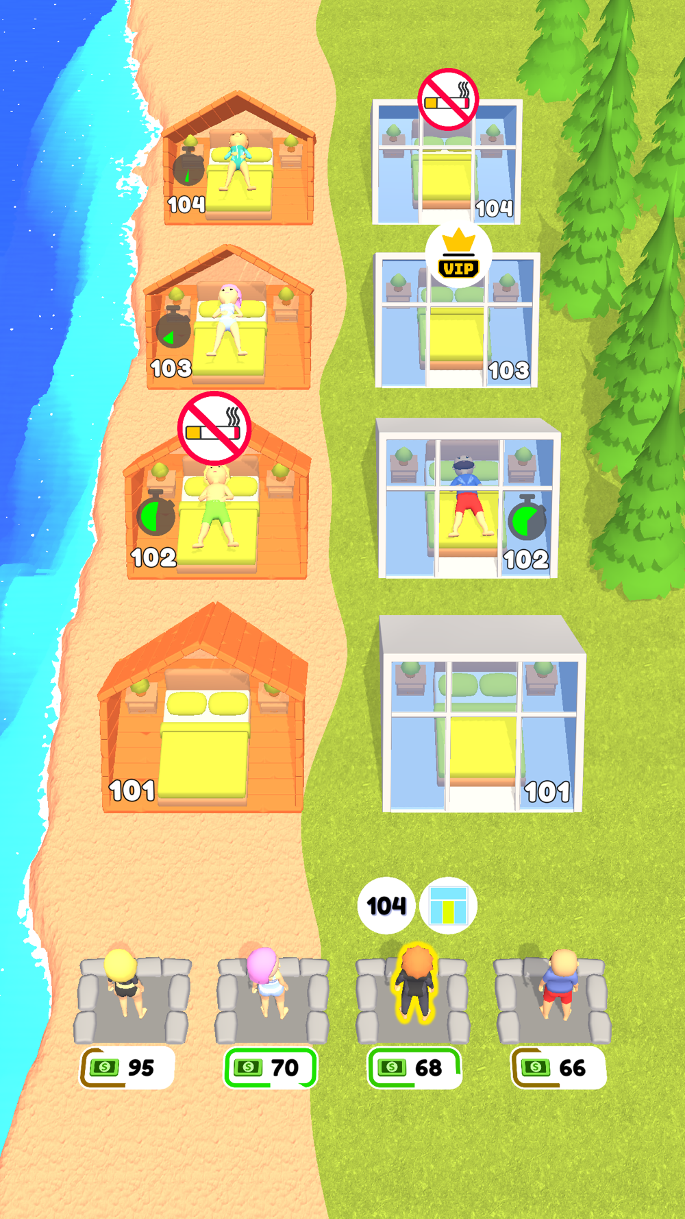 Satisfy your customers by placing them into the rooms they want. But you have to be quick because they are quite impatient if you make them wait longer you might lose them forever!