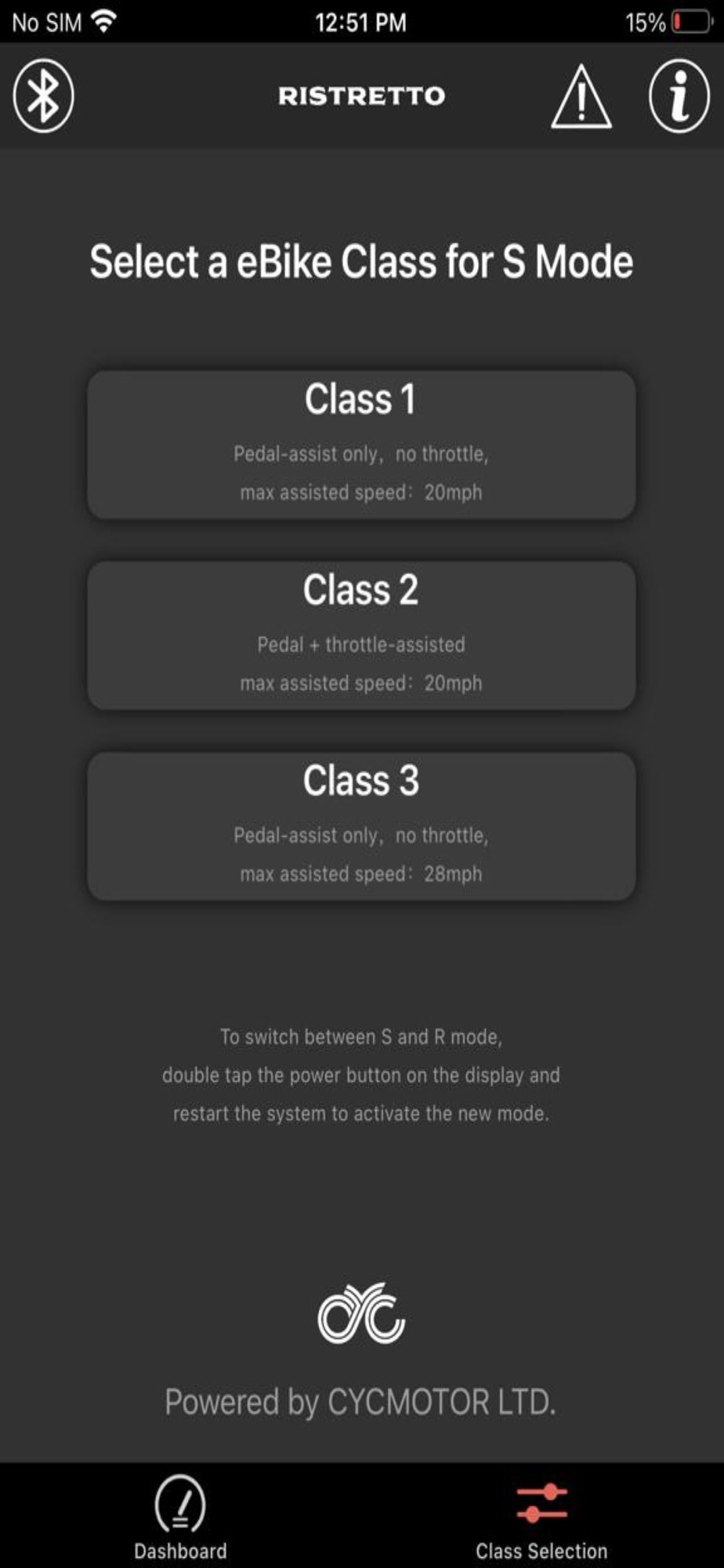 This app is compatible with all Ristretto 303 FS models. Not compatible with other ebikes or ebike controllers.