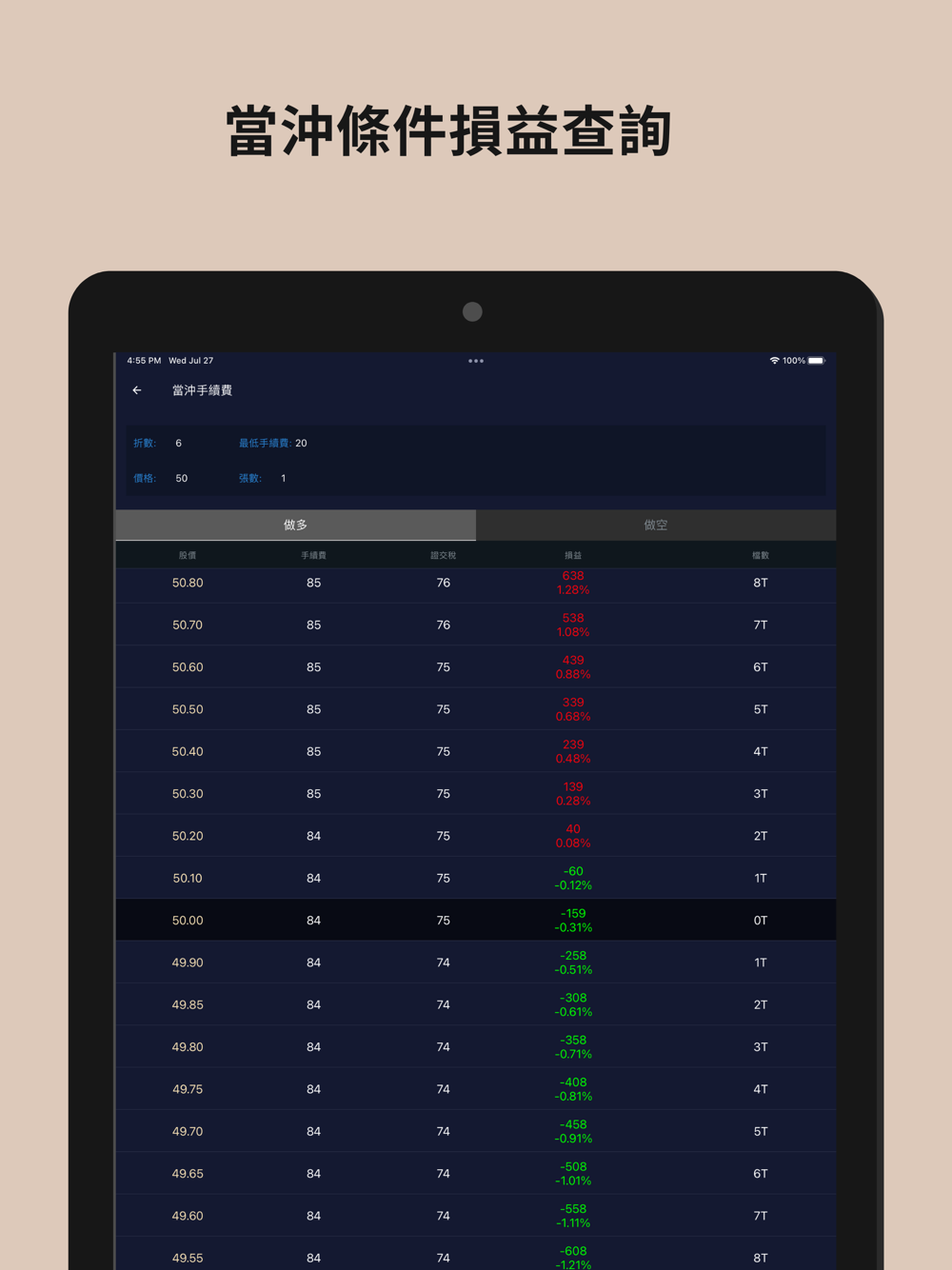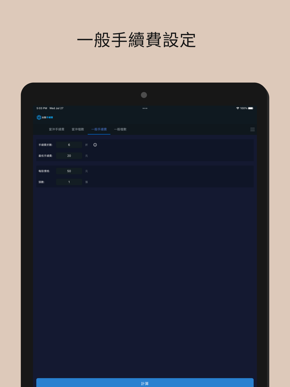 - 設定券商折數、最低手續費,查詢不同折數,所需手續費