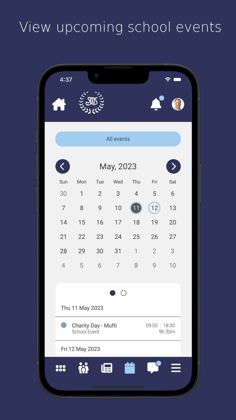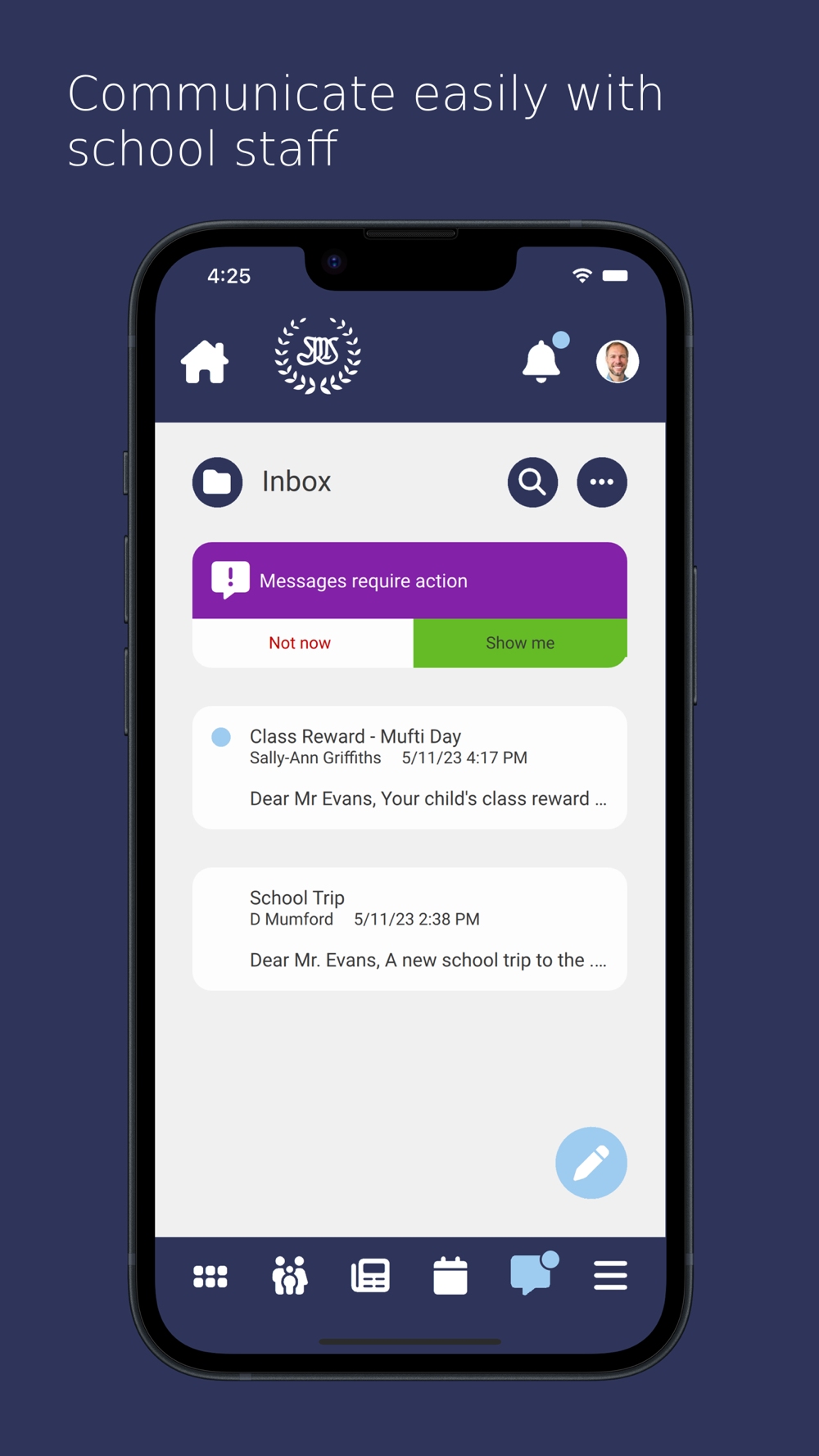 - Receive push notifications and in-app messages from the School.