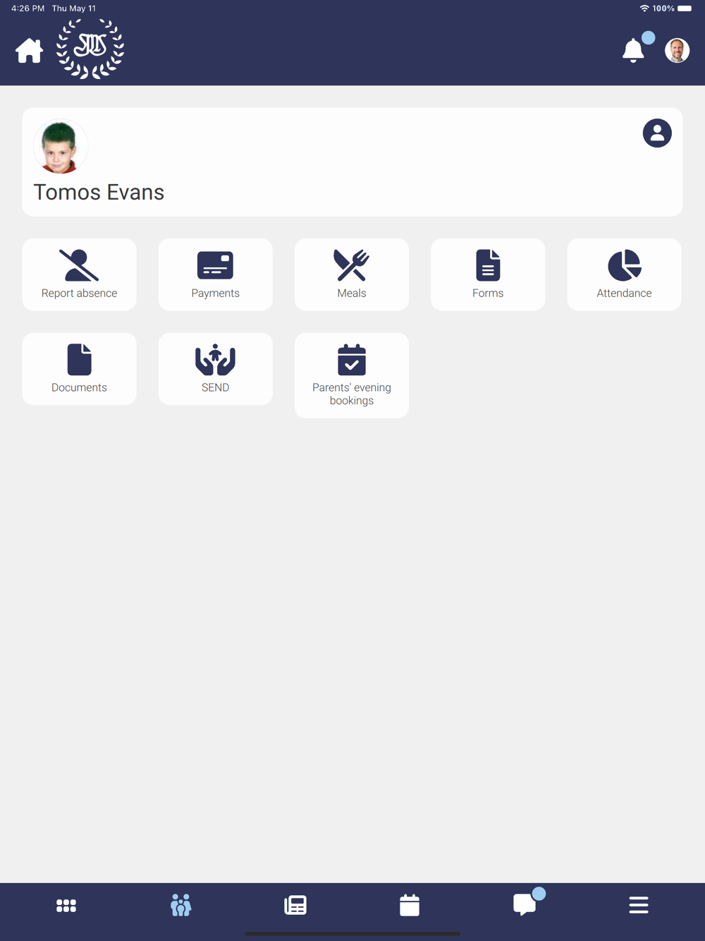 - View the school calendar and noticeboard, with information relevant to you and your child.