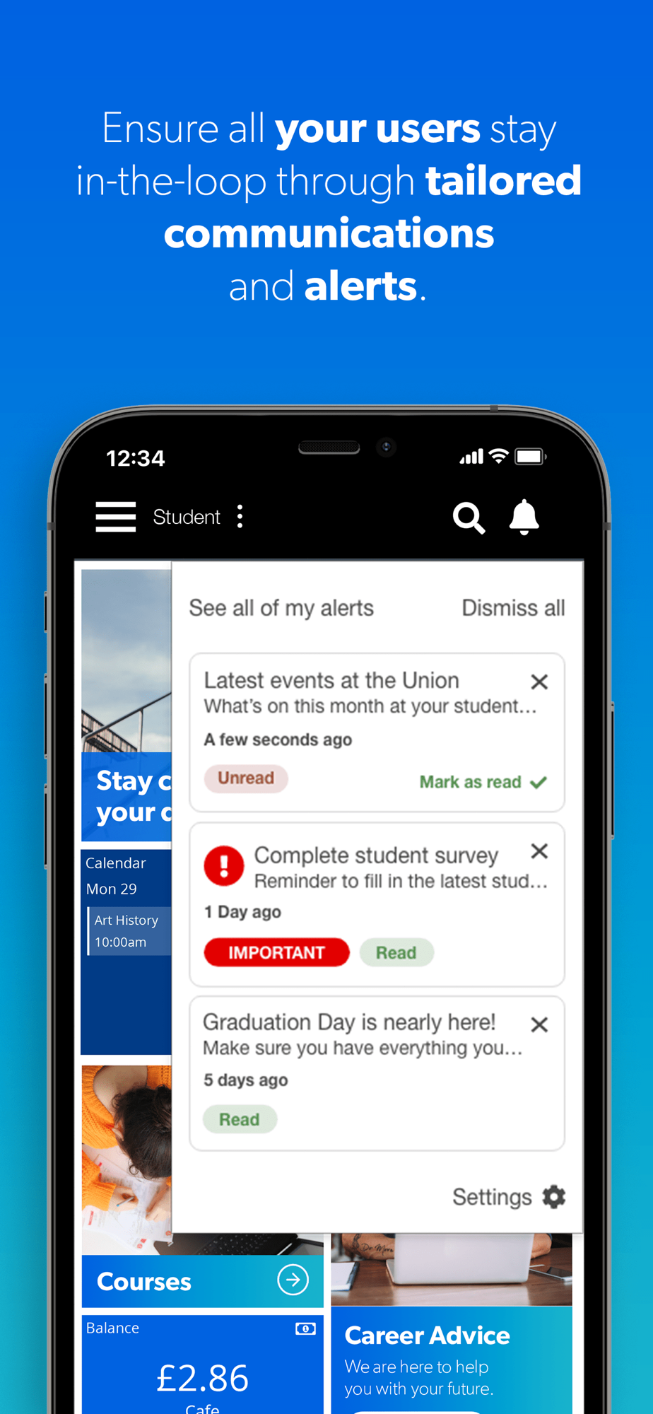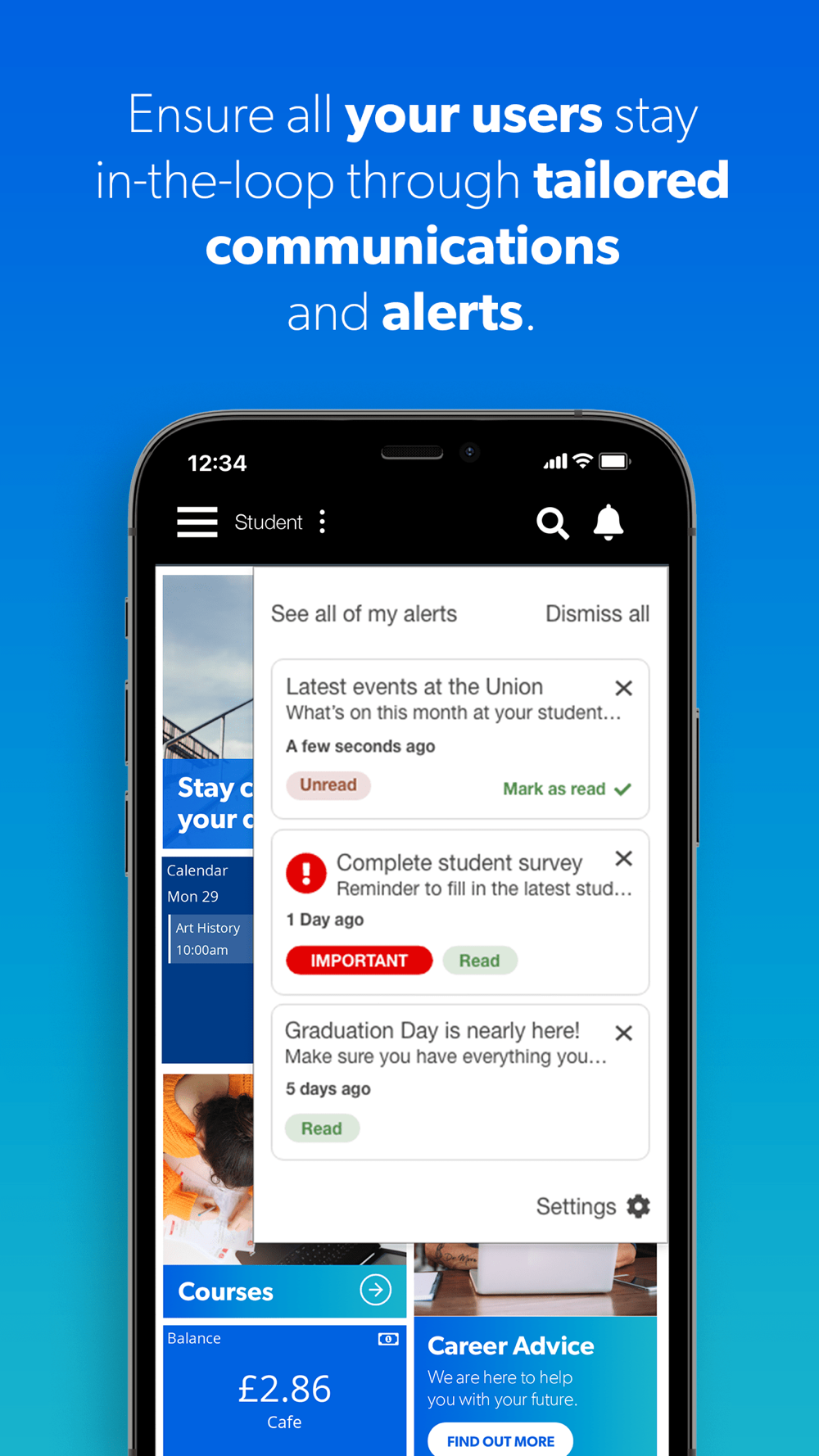 Notifications - Be kept up-to-date with your institution with multiple types of Alerts.