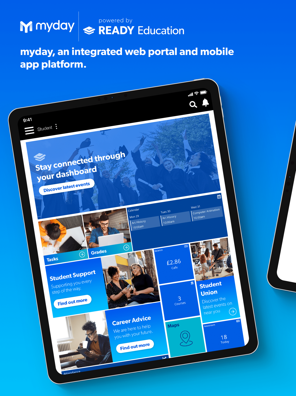 The myday mobile app by Ready Education is a revolutionary way to manage all the information, systems and resources you and your users need to succeed. With everything you need in one easy-to-access place and push notifications to keep you up-to-date, myday is your go-to app for your learning and education experience.