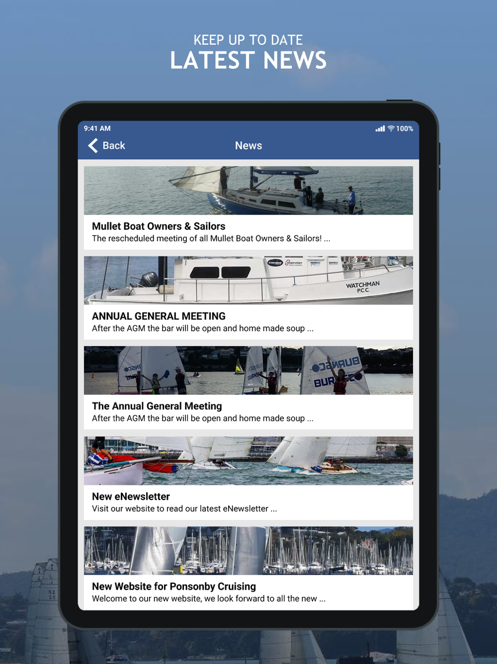 The official App for Ponsonby Cruising Club. Featuring news, photos, important links and Push Notifications to keep you up to date with the information that is important to you.