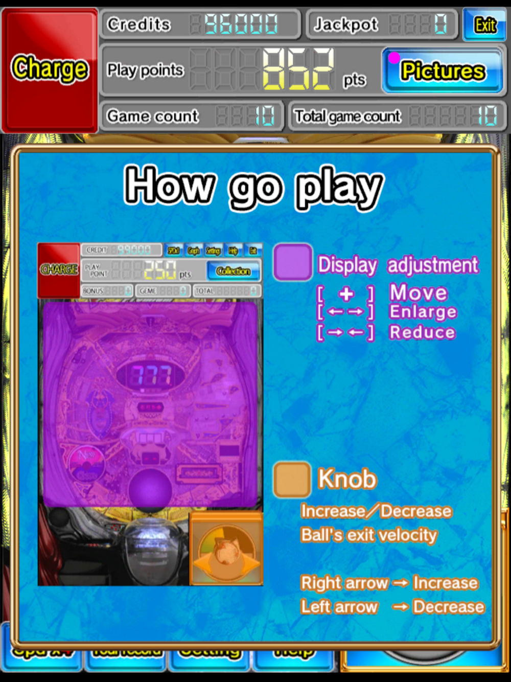 To help you understand how to play pachinko, navigation is provided on the screen.
