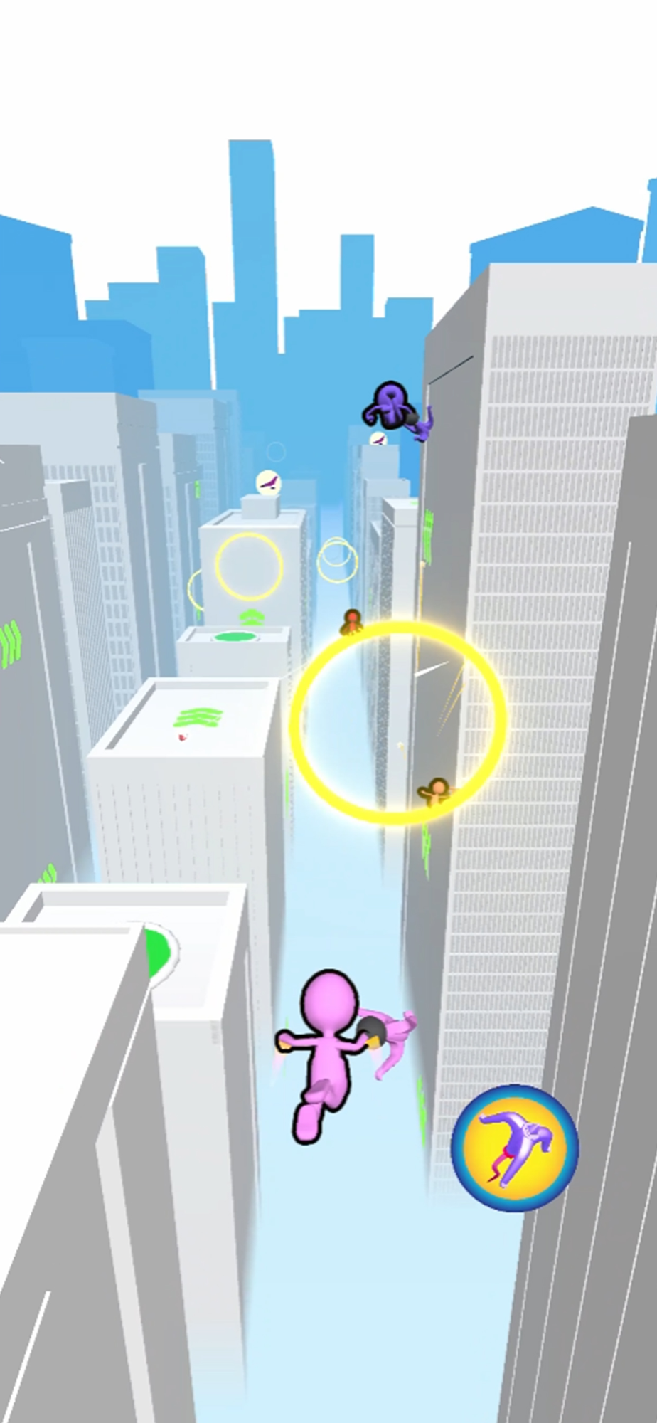 Push on the hook at the right-bottom corner of your screen to activate your hook! Swing around the blocks to be the fastest to reach the finish line!