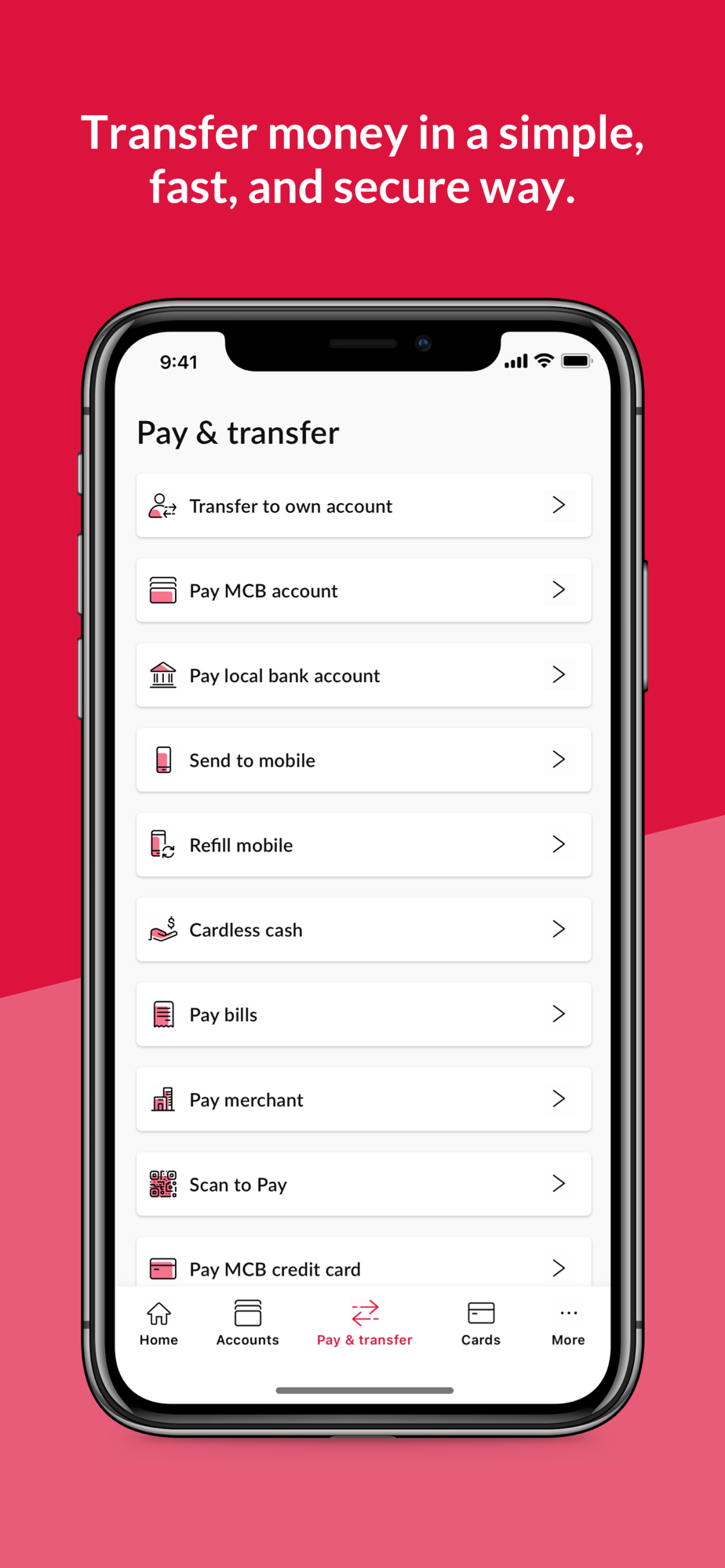 Take your bank with you wherever you go. MCB’s mobile banking app allows you to check your account balances, transfer money, manage your cards, refill your mobile phone, pay bills and do much more, anywhere, anytime.