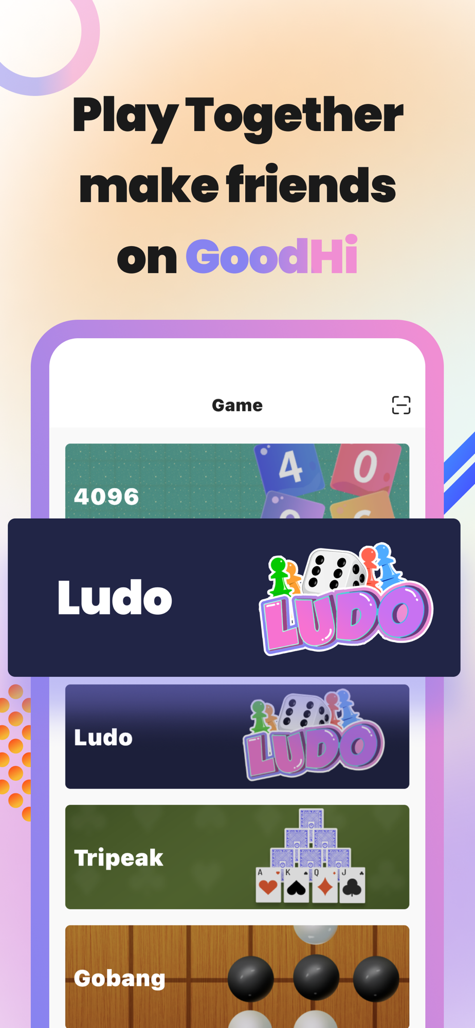 GoodHi is an app for young people to communicate and play puzzle class casual games together.