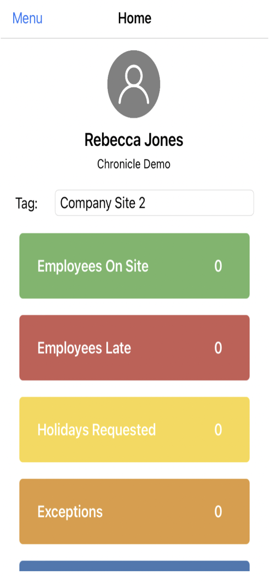 The Chronicle Manager App, displays real-time Workforce Management information. The Dashboard shows how many people are present and working on-site, how many people were late or how many people had exceptions and forgot to clock IN or left early. There is a Live Screen that shows where the person is working, what they are doing and their current status. The Fire Reporting Screen enables managers to do a real-time Fire Roll Call. In addition, you can view and authorise holiday requests.