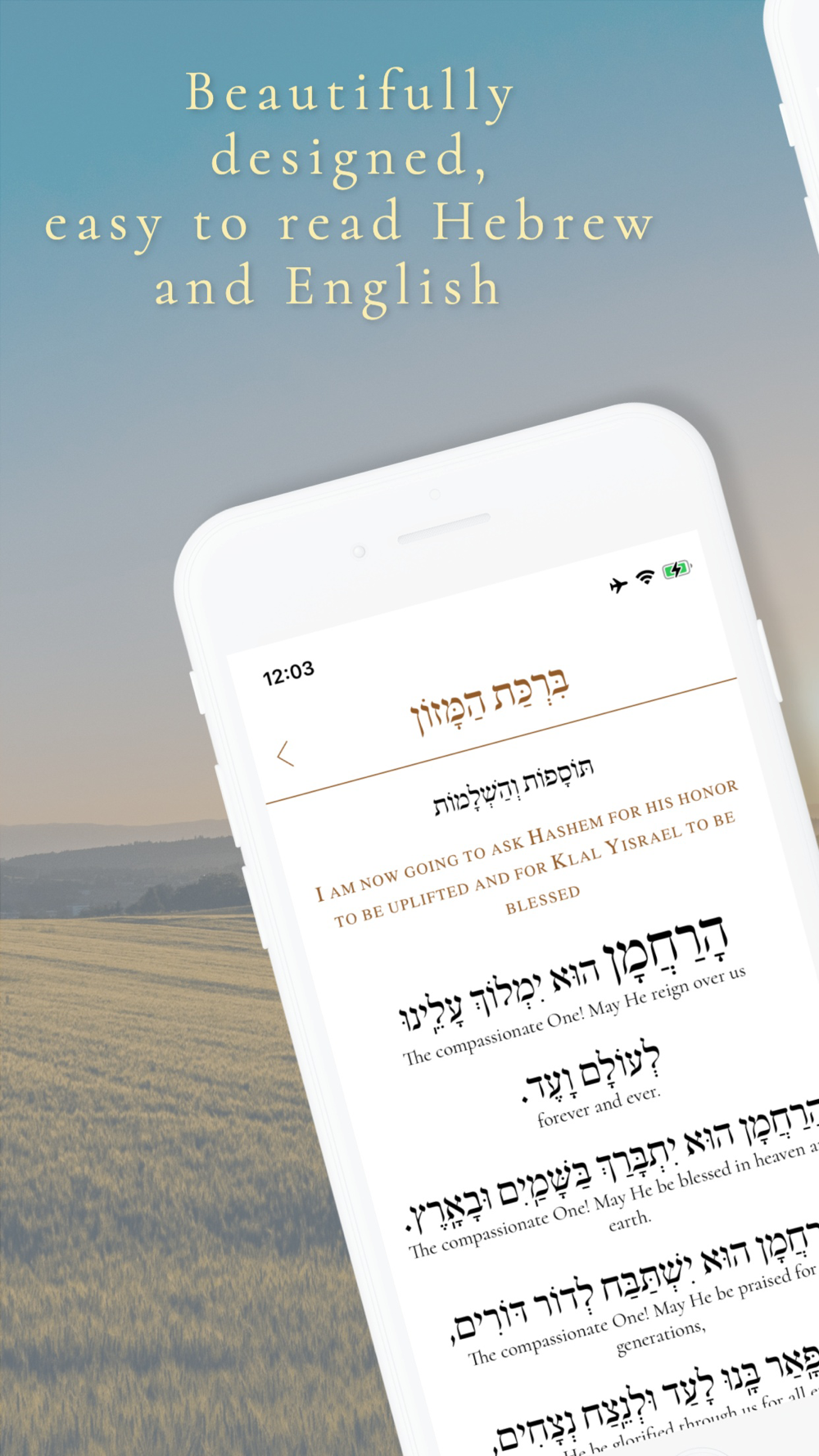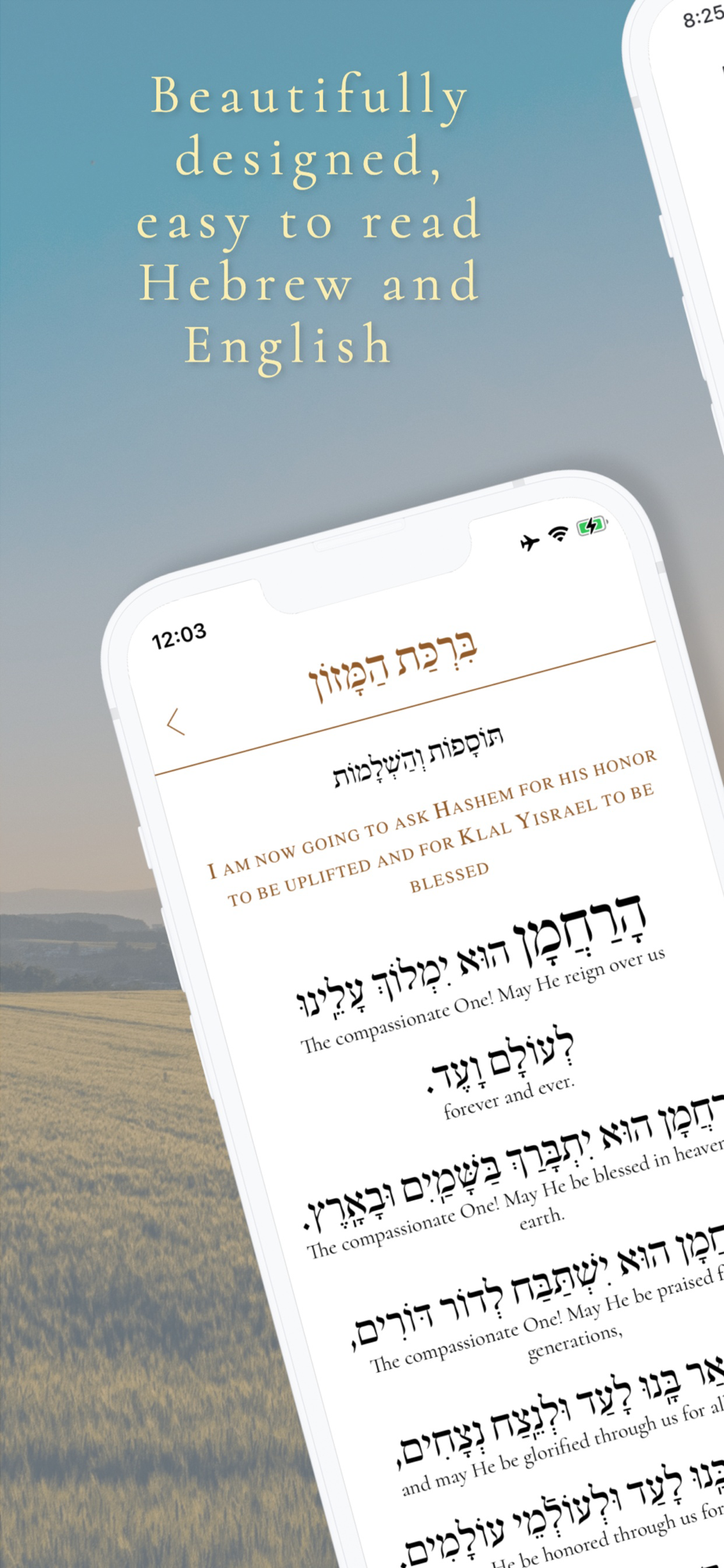 Following the beautiful design of its hardcover companion, The Benching App features a flowing Hebrew text with an accompanying english translation, designed to make it easy for you to understand the words you are saying while you are benching.