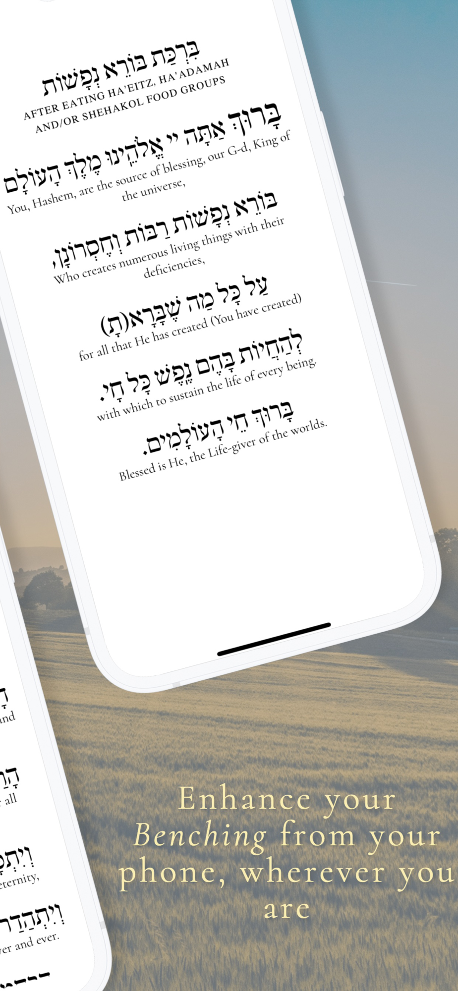 With Birchas Hamazon, Bracha Me'in Shalosh, and Borei Nefashos, you can use The Benching App to enhance your after-blessings right from your phone, no matter where you are.