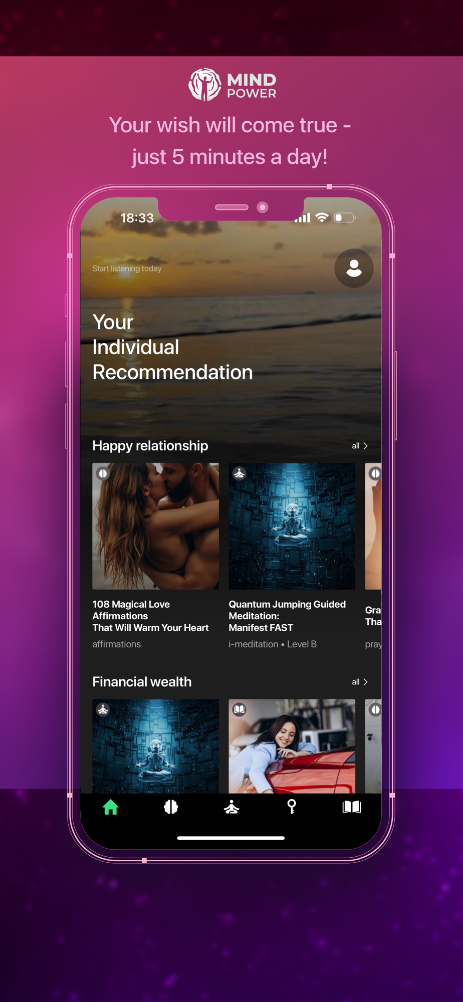 This application utilizes intention-based meditation, a unique practice designed to manifest your desired outcomes.