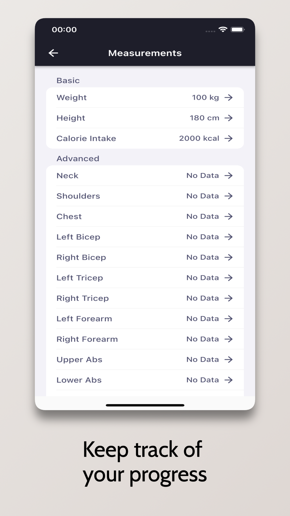 - Track the changes in your body and visualize them with the help of graphs