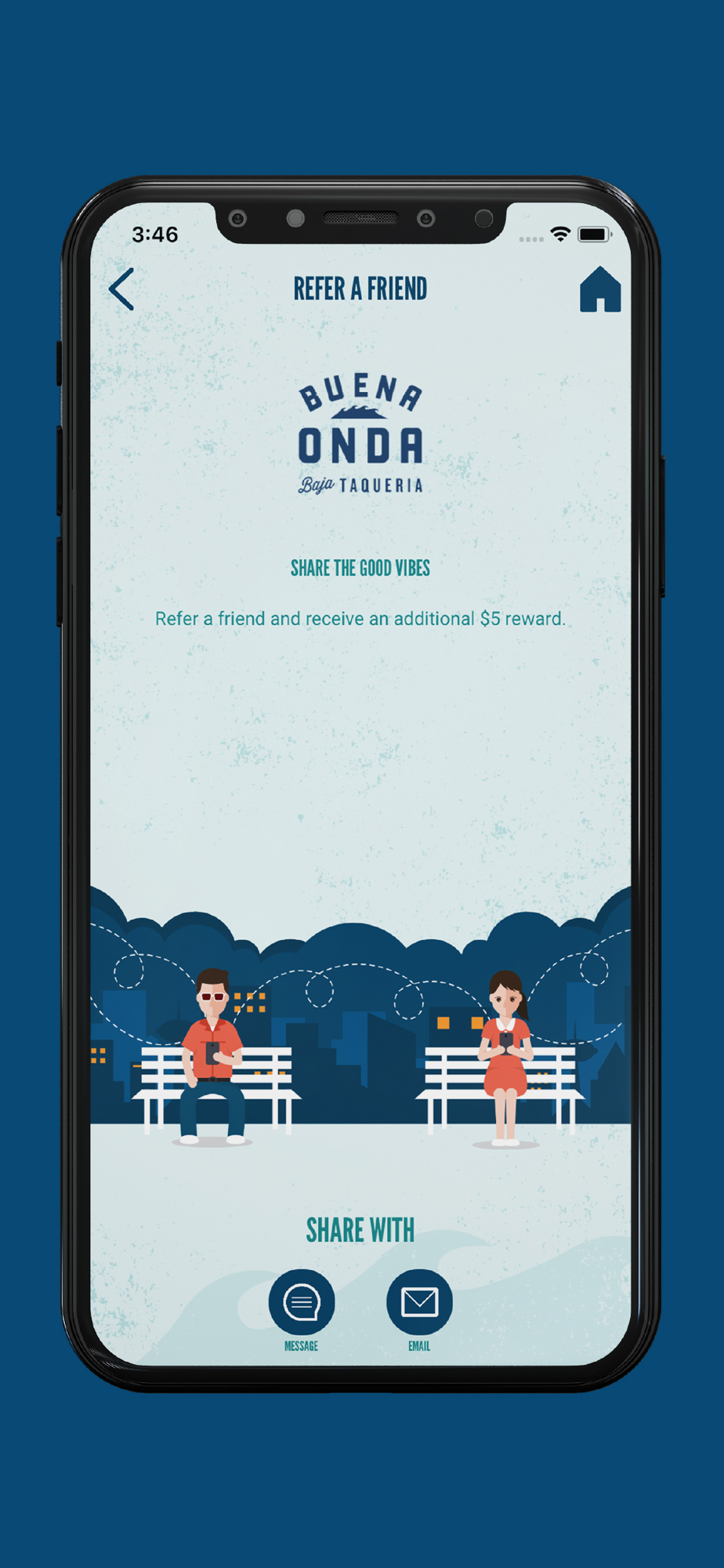 Earn rewards through our Buena Onda Loyalty Program. Receive 1 point for every $1 spent.