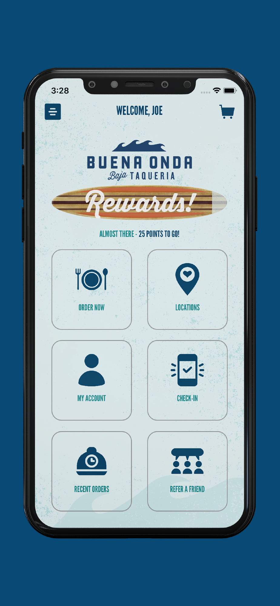 The Buena Onda Tacos mobile app is a convenient way to pay, order ahead, earn rewards and skip the line.
