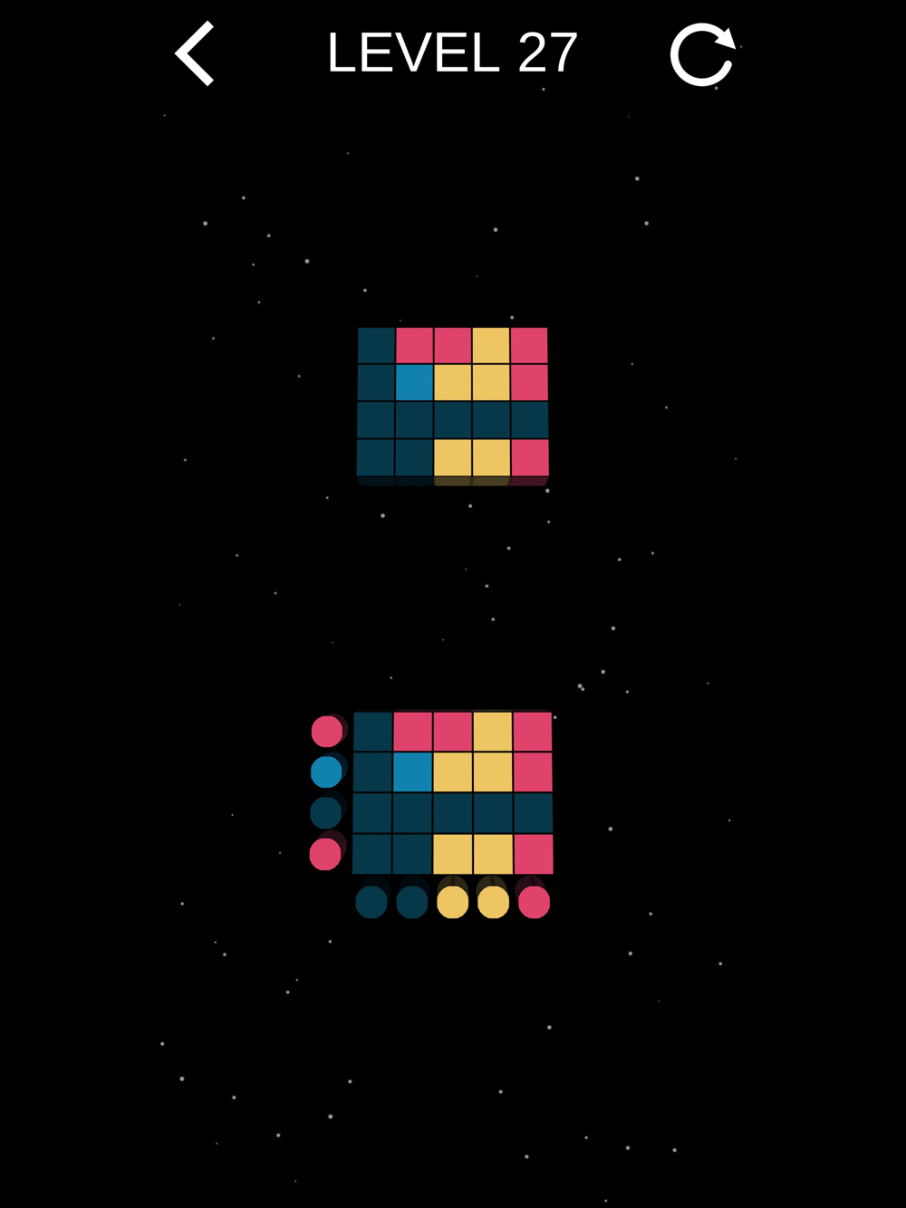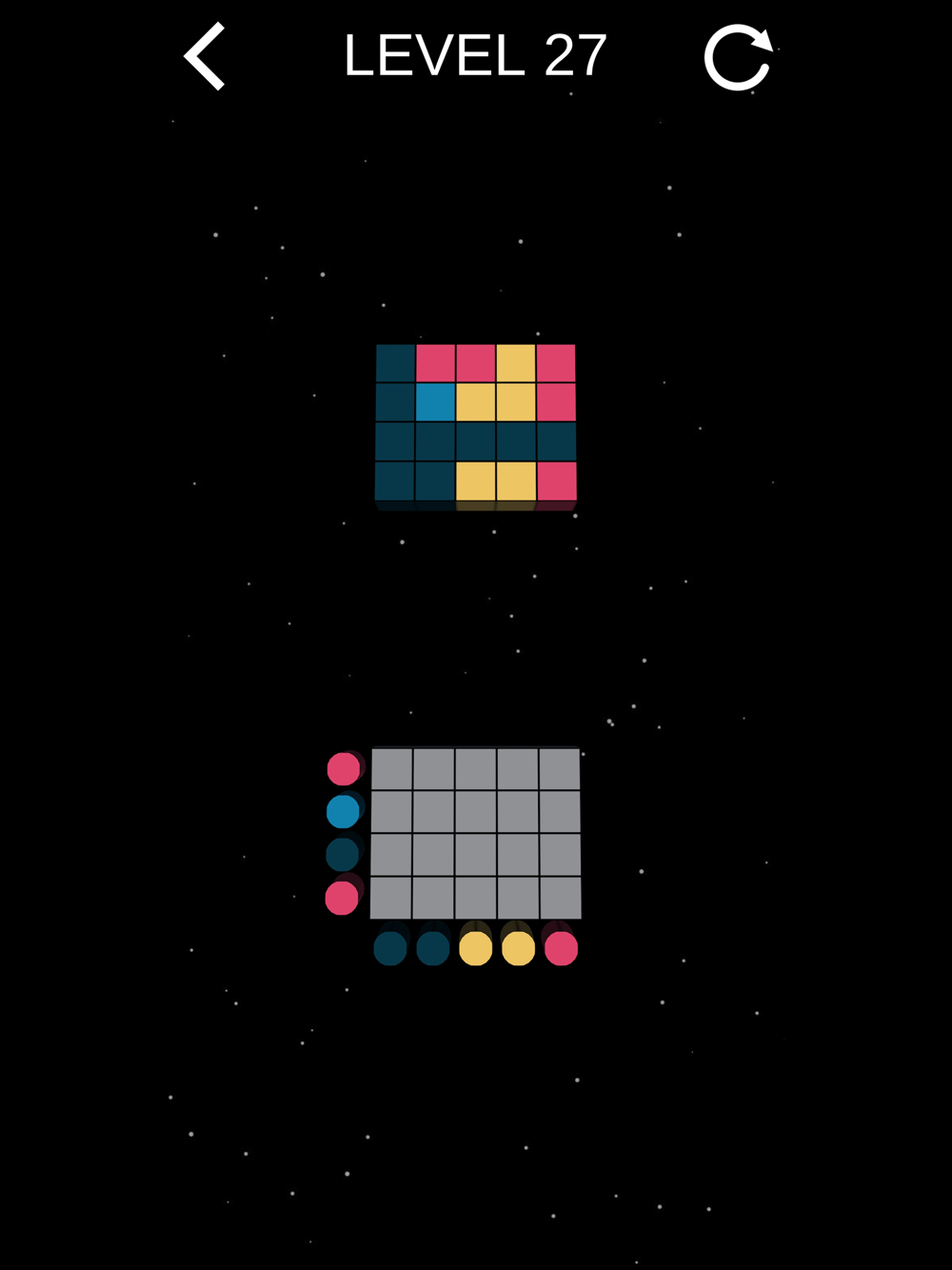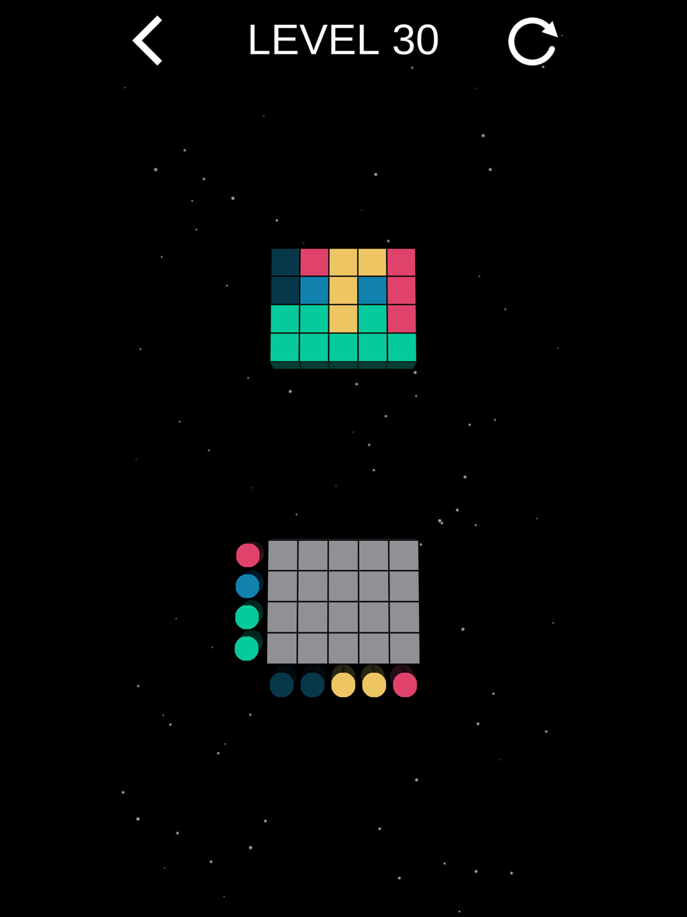 placed. Make all colors of the tiles match the colors of the pattern. Try