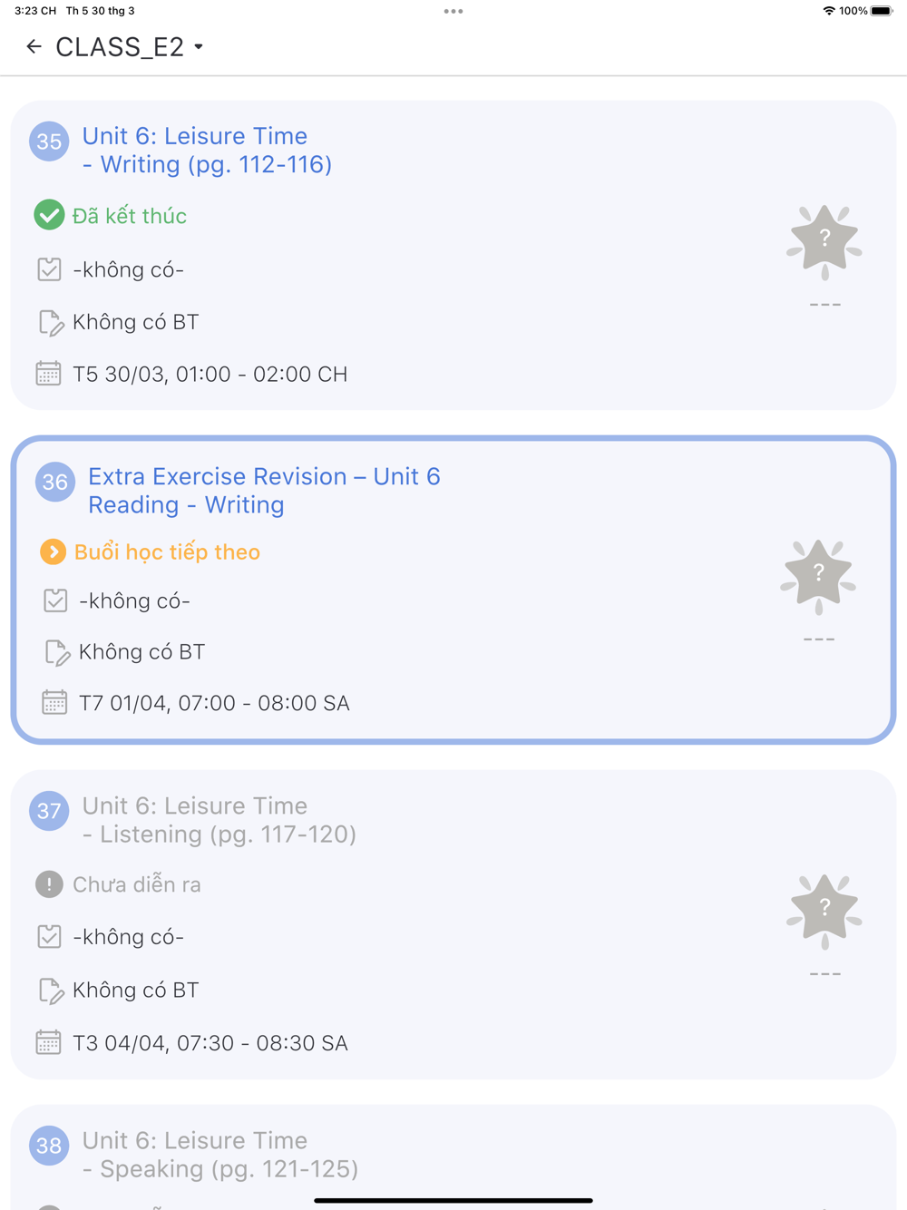 2. THEO DÕI LỊCH HỌC – Xem lịch học của tất cả các lớp bạn đang tham gia với thao tác này.
