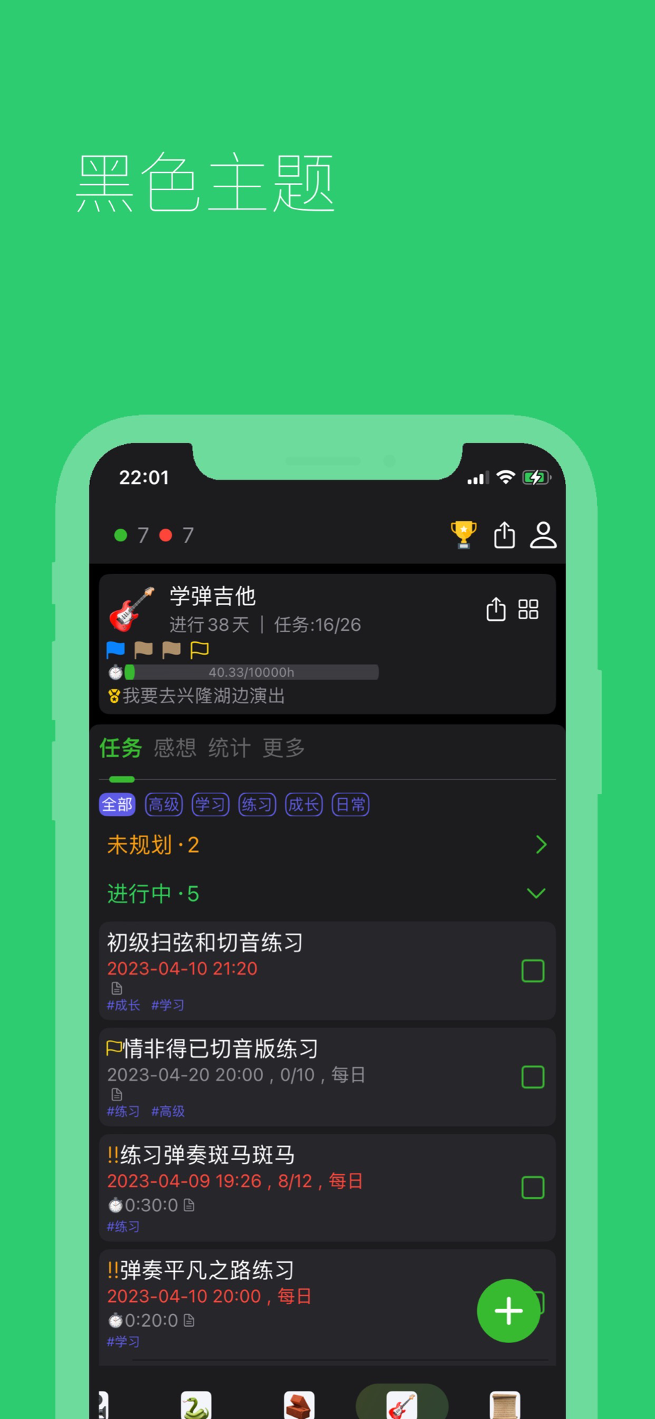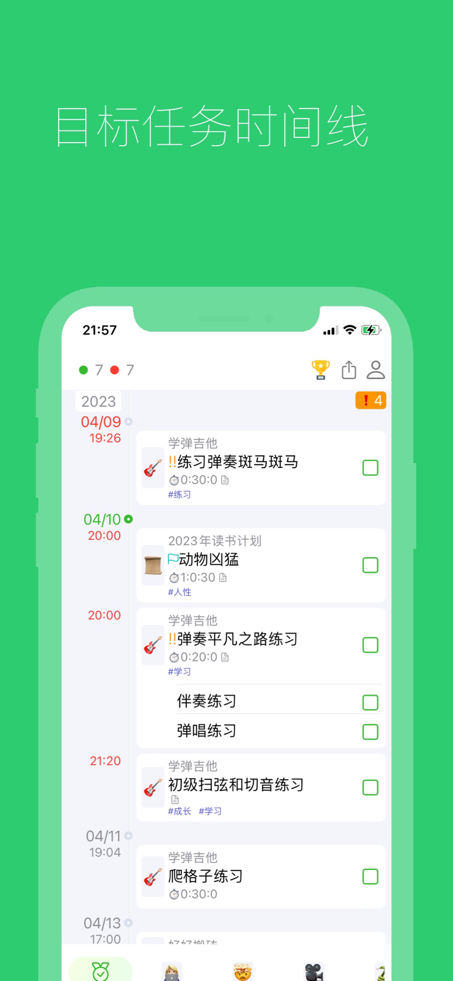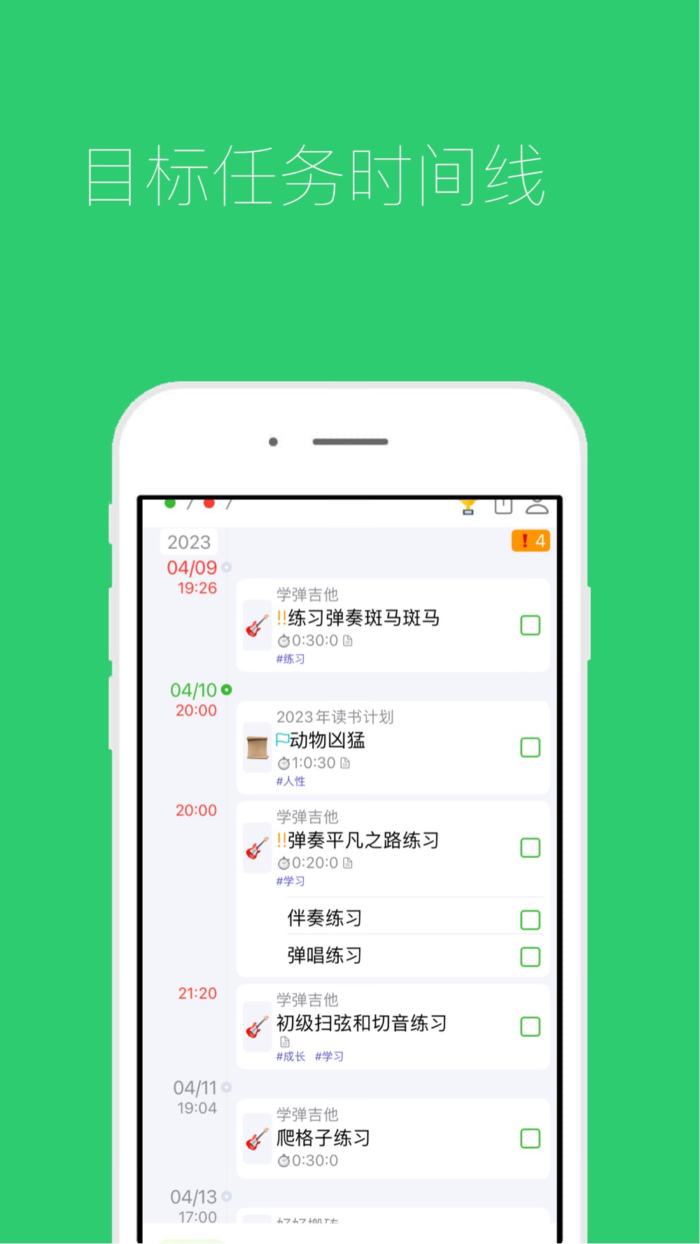 任务将被串成时间线,让你高效专注的单线执行,以此逐步达到一个个目标。