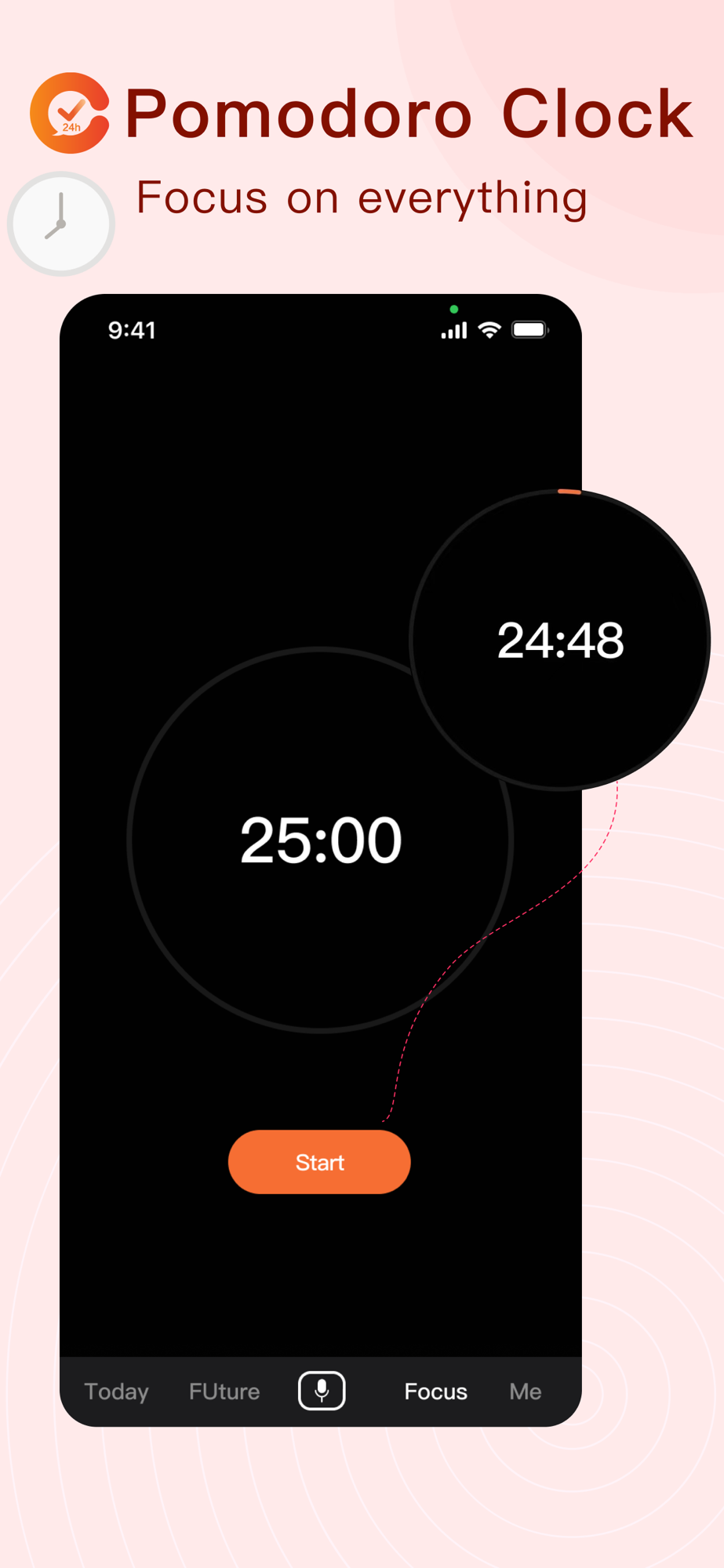 Use the Pomodoro method to make good use of 25 minutes. Of course, you can also set the time you need to focus on yourself, our recommendation is 25 minutes