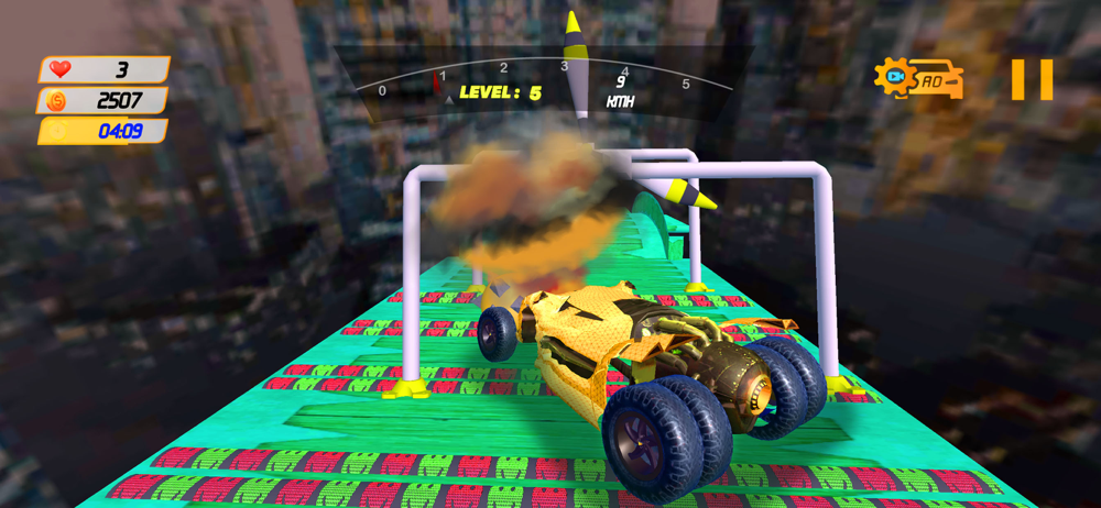 Can you finish the smooth stunt track without hitting the hurdles comping your way to crush and crash your vehicle?