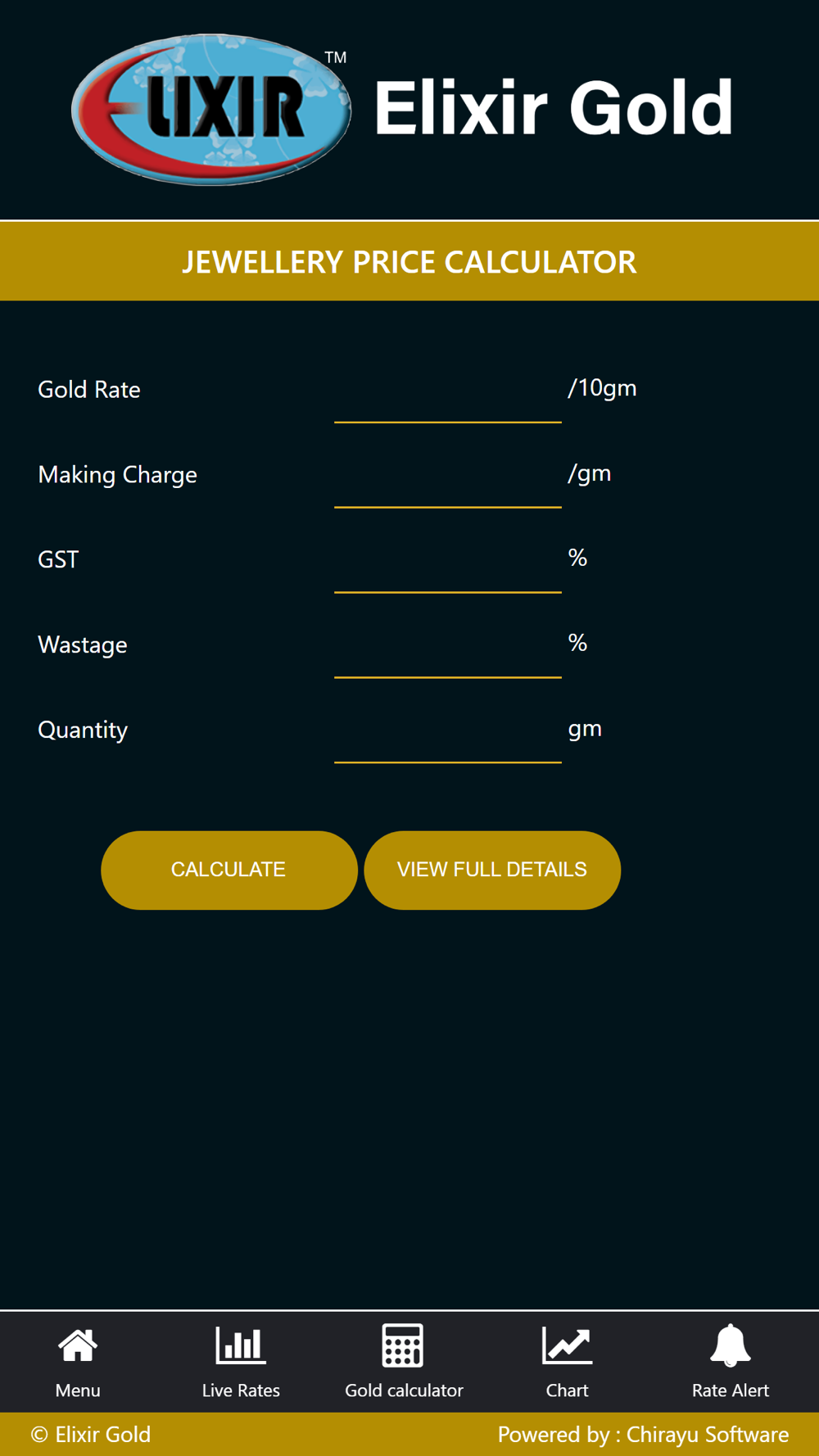 It has facilty of Jewellery price Calculator, This feature allows the user to calculate value of any jewellery keeping in view Gold weight, purity and making charges.