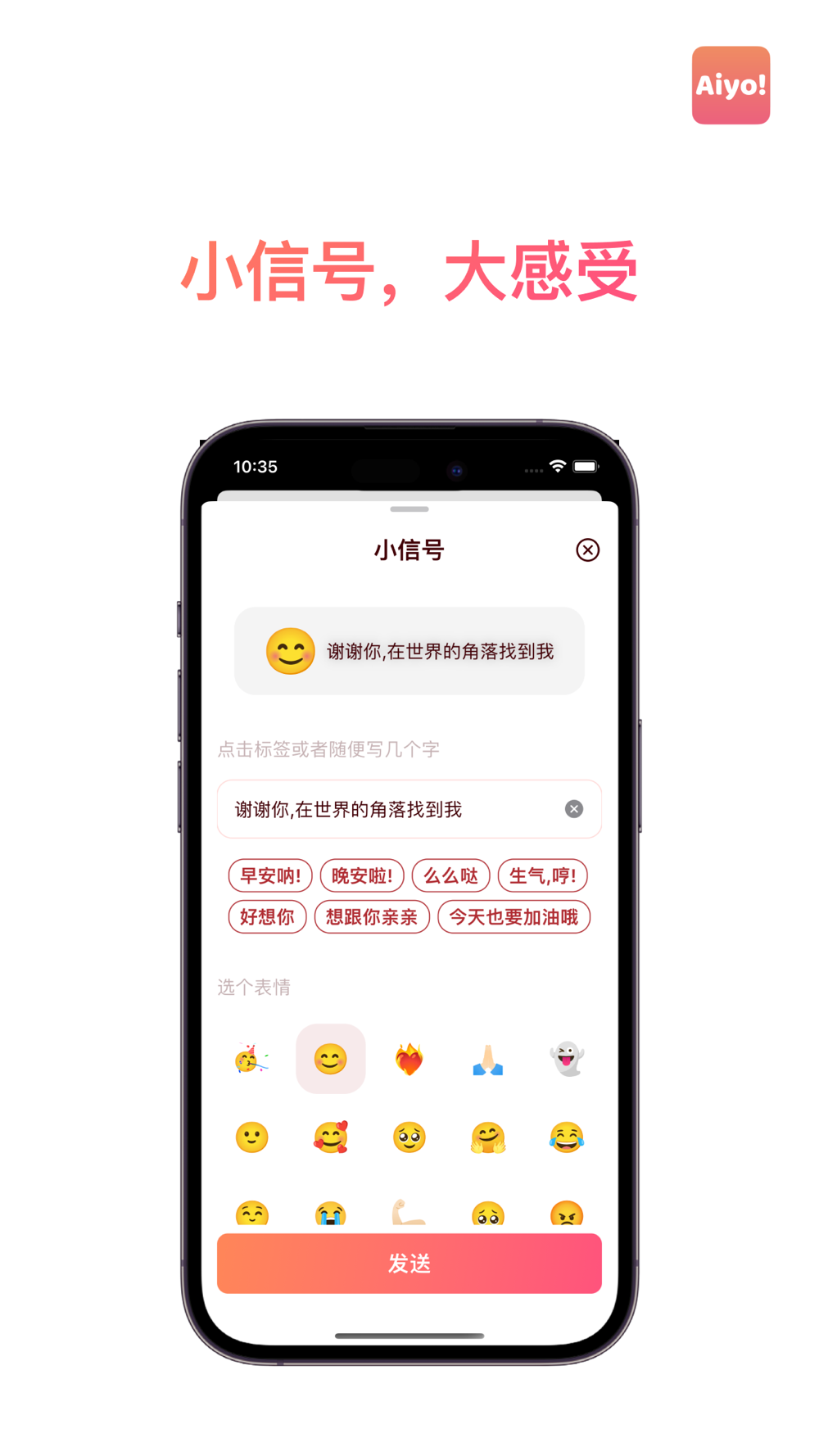 通过简单的表情和文字表达关心和想念,不用担心不知道说什么了,也不用担心每天想说什么却无话可说,轻轻点击即可发送给 ta!