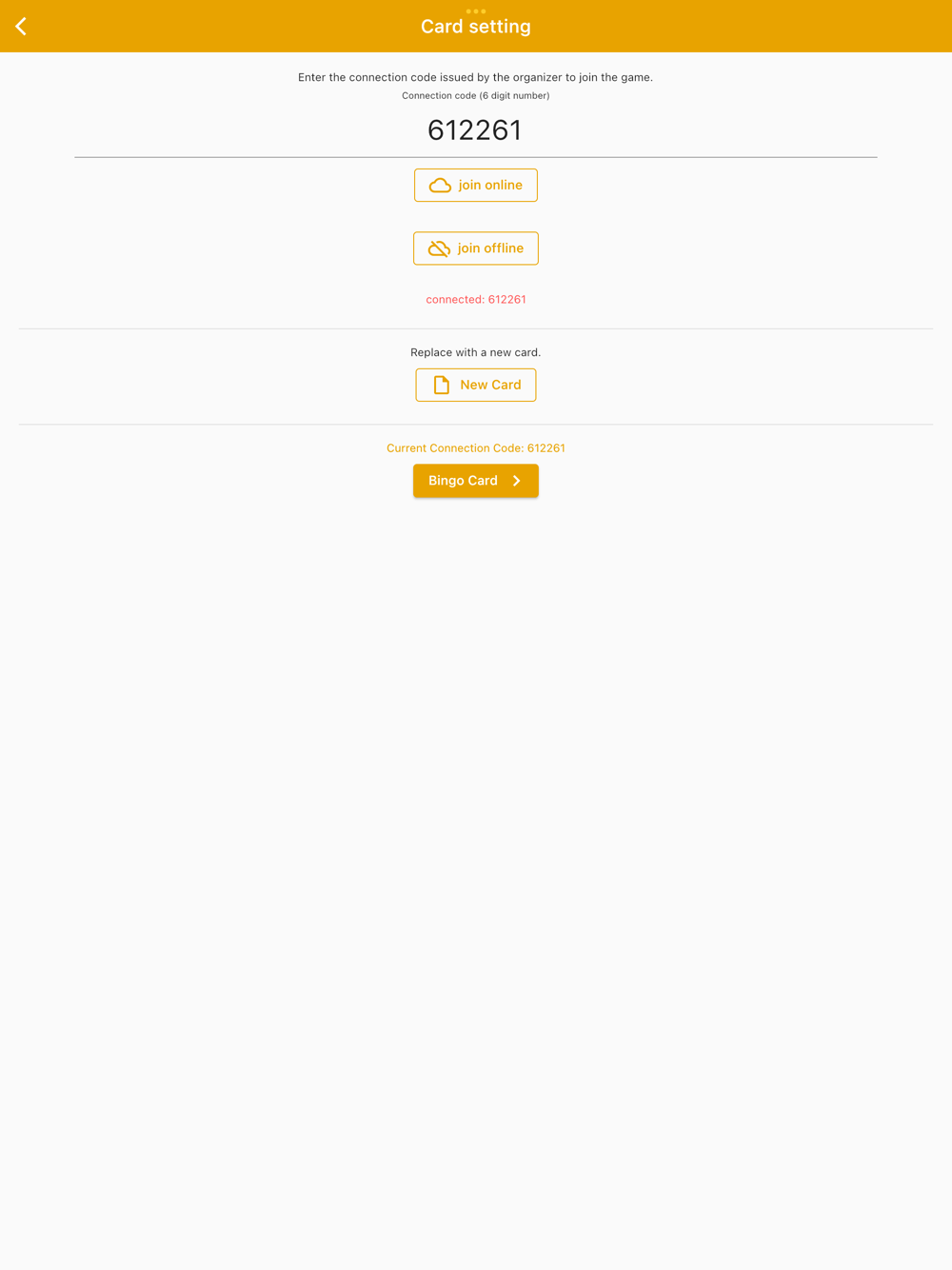 Attendees enter the connection code received from the organizer in their card settings.
