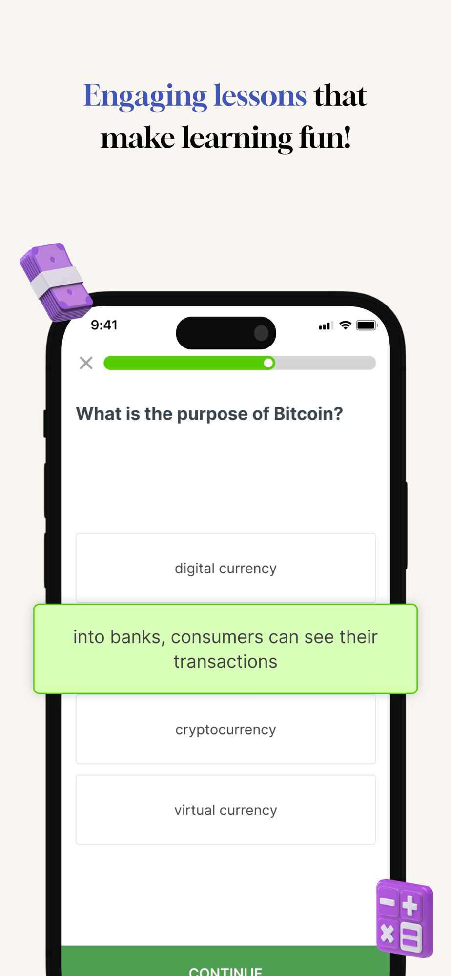 In this app, you'll learn about the history and purpose of Bitcoin, why it's becoming increasingly popular, and how to buy and store it. You'll also explore the exciting world of Ethereum and its many applications. Our courses cover topics like mining, smart contracts, and scaling, so you'll have a deep understanding of these complex technologies.