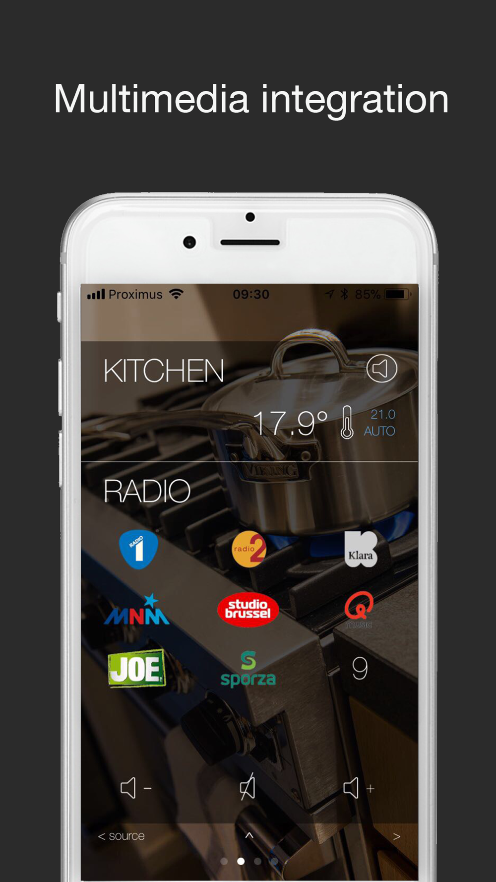 The application connects worldwide via a secure line to your B&B home automation server, to monitor or control any device in your home or apartment.