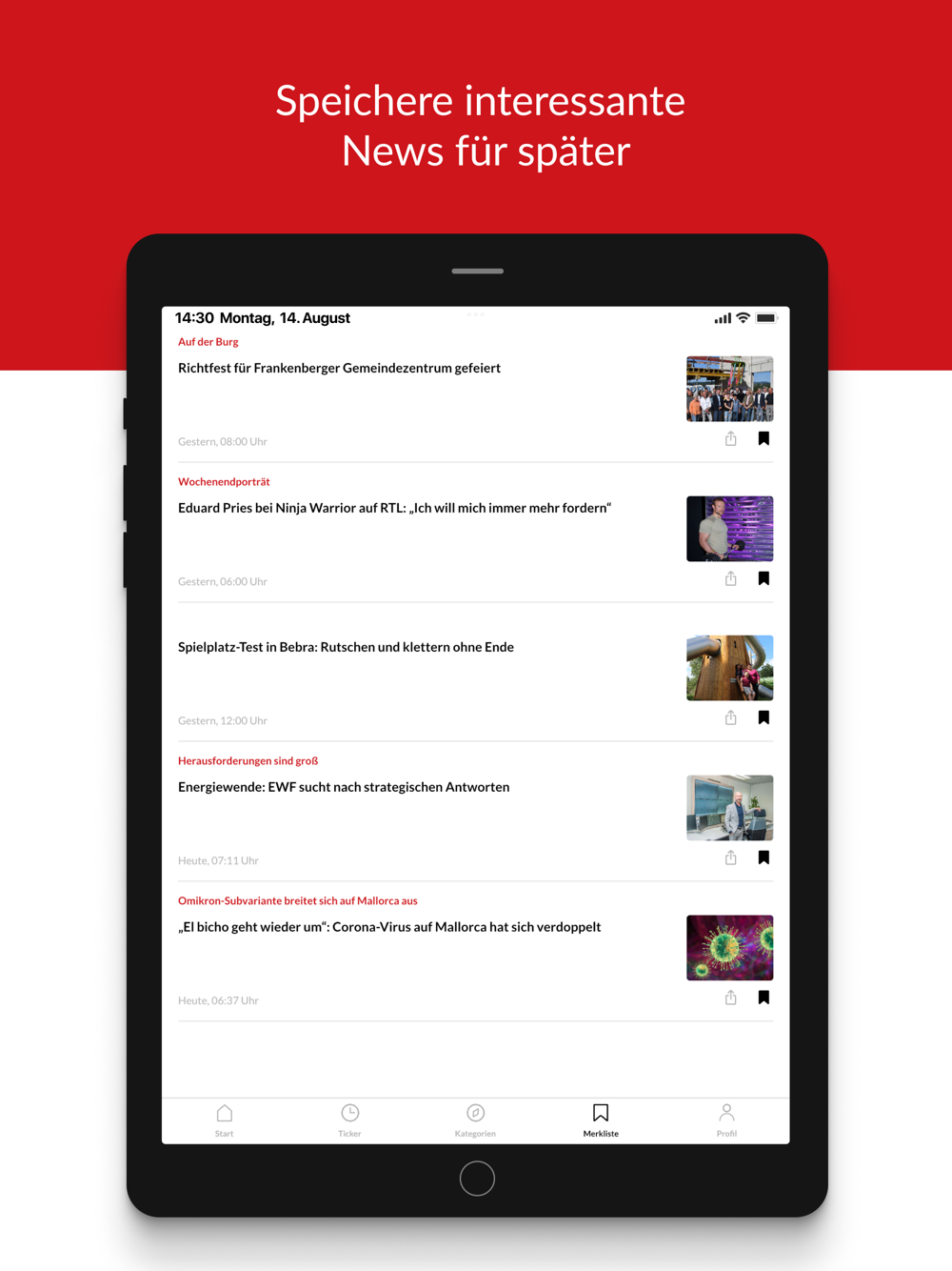 Die Merkliste-Funktion ermöglicht es Ihnen, Artikel zu speichern, die Sie später lesen möchten. So behalten Sie den Überblick über interessante Geschichten und können sie jederzeit abrufen.