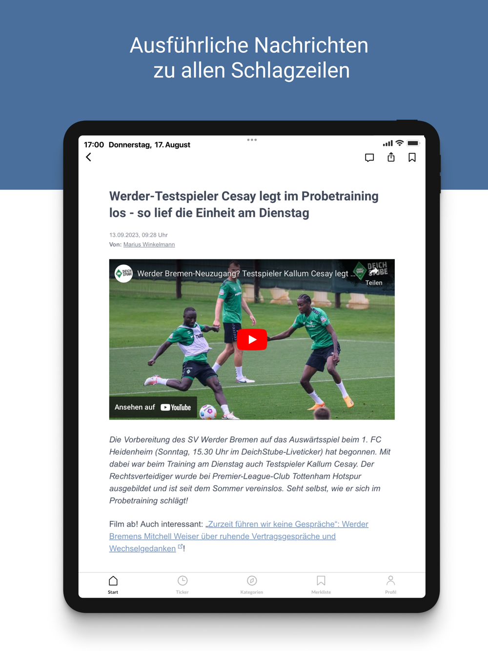 Regionale und überregionale Nachrichten sowie aktuelle News aus den Rubriken Politik, Wirtschaft, Welt, Sport und Lokales auch unterwegs immer im Blick mit der komplett kostenlosen App der Kreiszeitung. Jetzt im neuen Design und mit noch mehr Funktionen.