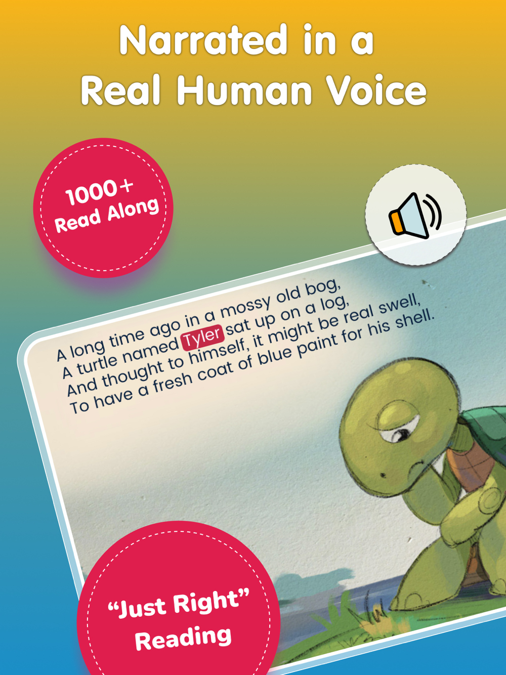 Our unique "Just Right" method, unique story and useful books/read along books offer the most authentic reading experience mimicking traditional finger tracking.