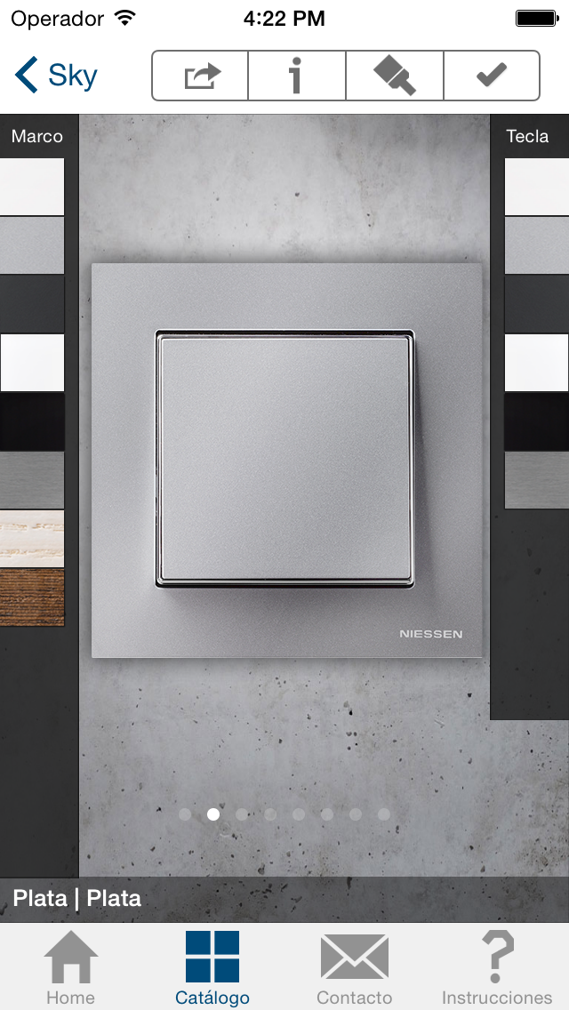 Estés donde estés, podrás seleccionar el interruptor Niessen que mejor se ajusta a tu decoración y estilo. Selecciona un fondo de pared o bien saca una foto a tu pared y comprueba como quedaría el interruptor. Combina los marcos y las teclas de tu interruptor hasta lograr el efecto final deseado. Y, una vez tengas tu combinación favorita, ¡no te olvides de compartirla por email!
