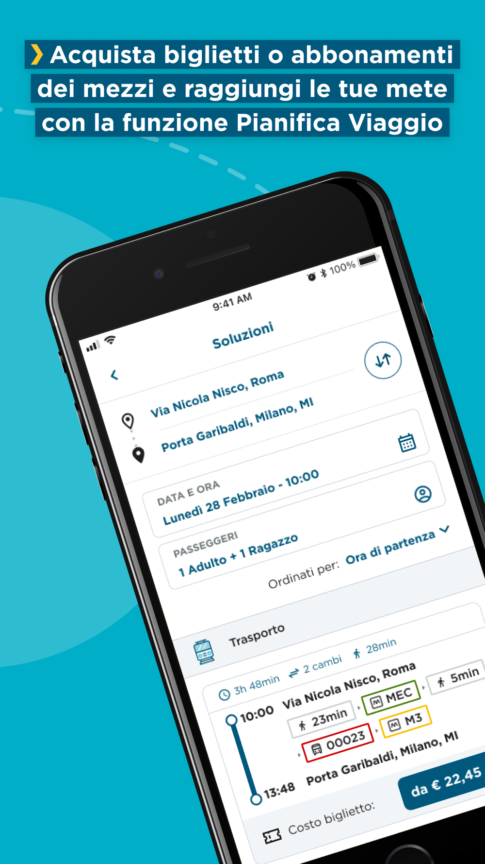 Organizza il tuo viaggio e spostati in città con i mezzi pubblici: con l’app MooneyGo confronti le migliori soluzioni di viaggio, acquisti velocemente biglietti, carnet o abbonamenti di treno, autobus e metro di numerose compagnie locali come ATAC Roma, ATMA, TPL FVG, Autoguidovie e più di 140 altre aziende di trasporto in Italia.