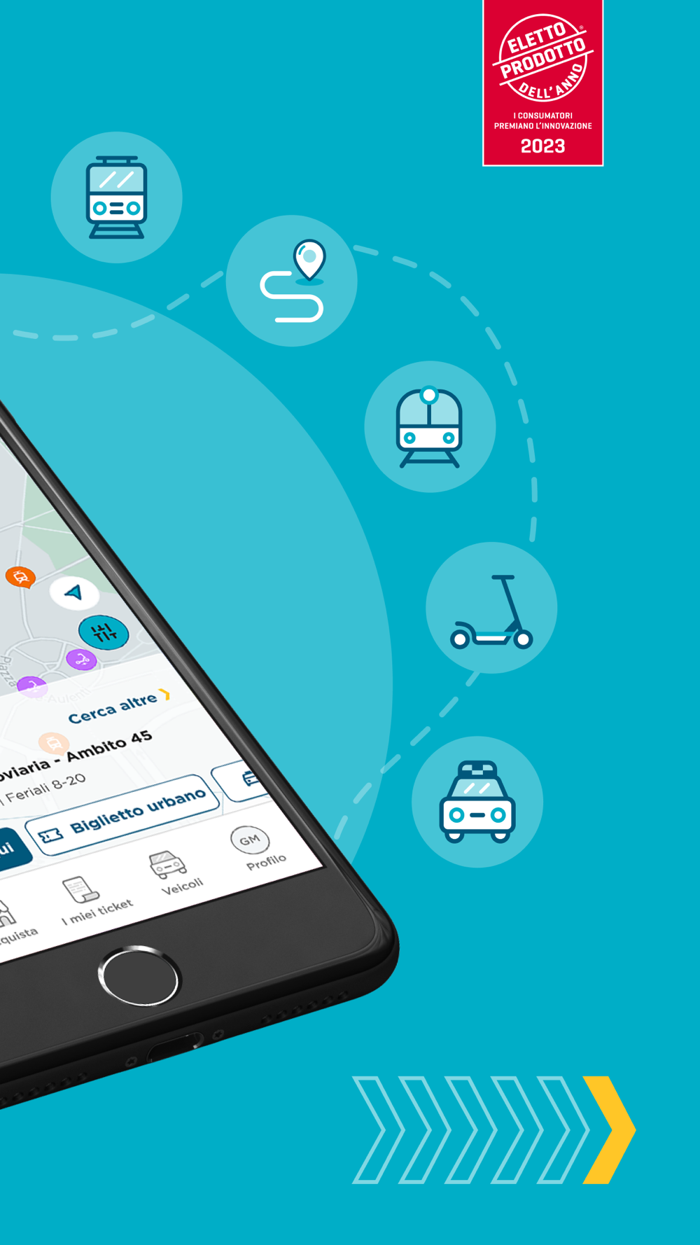MooneyGo è l’app gratuita con la più ampia offerta di servizi di mobilità in Italia eletta Prodotto dell’Anno 2023 come migliore innovazione nella categoria dei servizi per la mobilità.