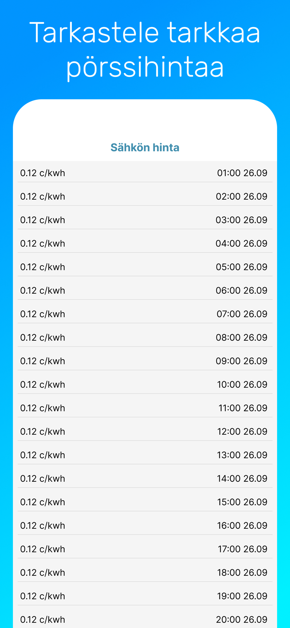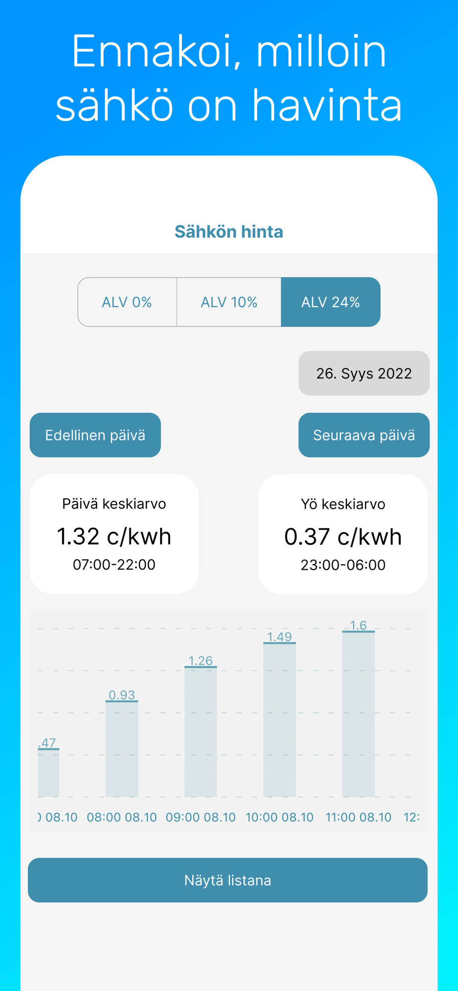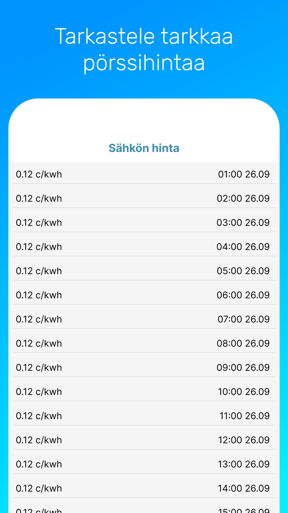 Sähkön pörssihinta sovelluksella seuraat sähkön Spot-hintaa kätevästi sovelluksen avulla.