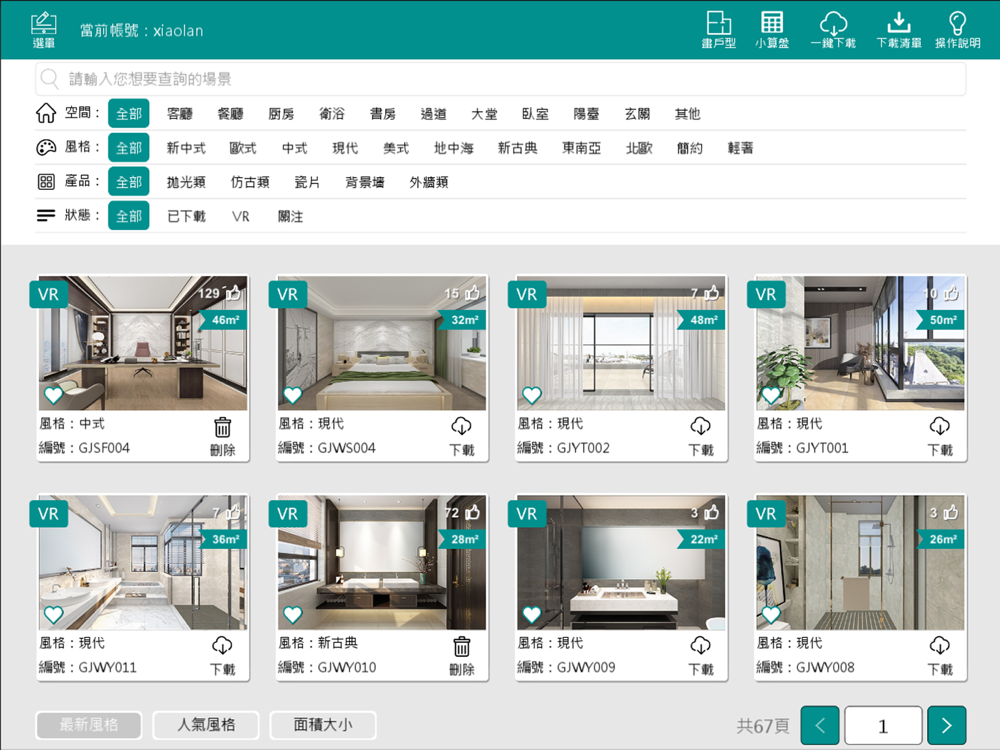 冠軍建材集團特別開發_全新智能配磚體驗APP「冠軍磚家」,融入各式各樣的風格場域,完美示範各類型磁磚的運用;還利用720度VR效果感受擬真實景,透過虛實整合呈現出空間設計的想像,讓選磚更有效率。
