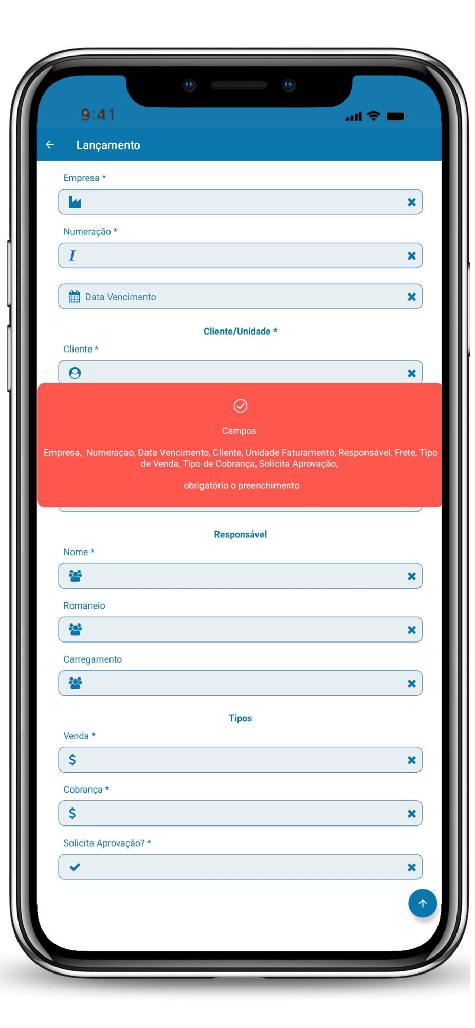 - Cadastro temporário de clientes e fornecedores.