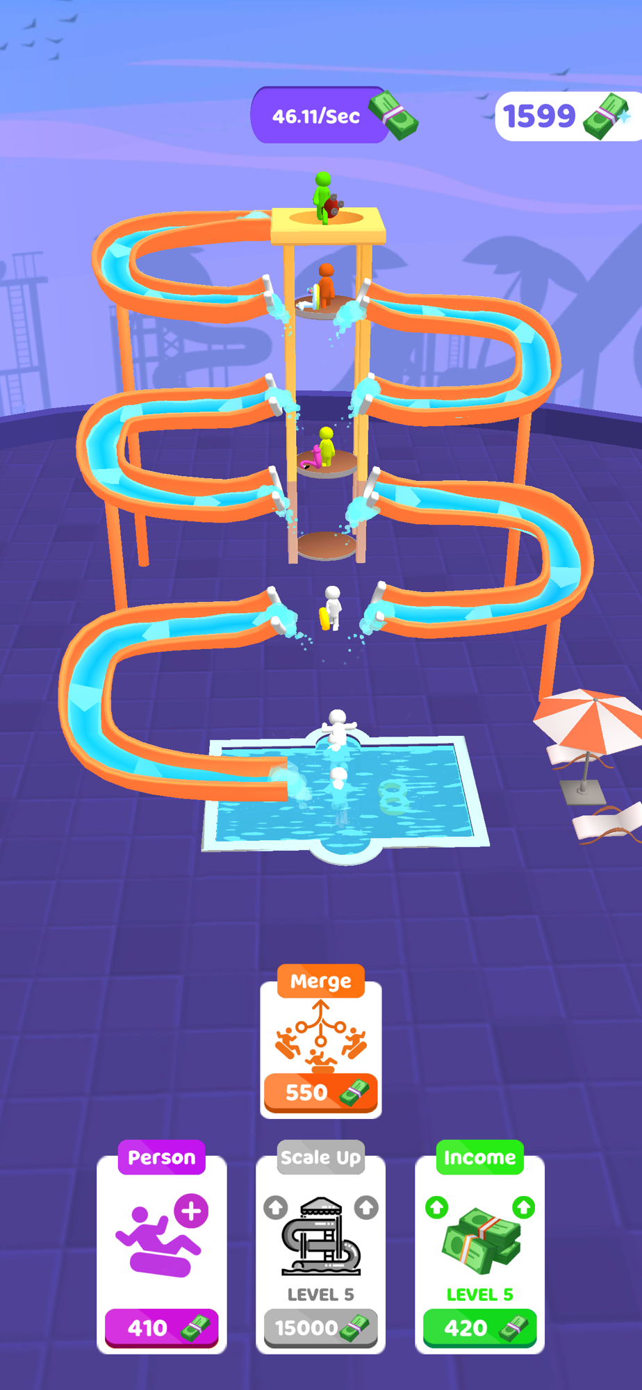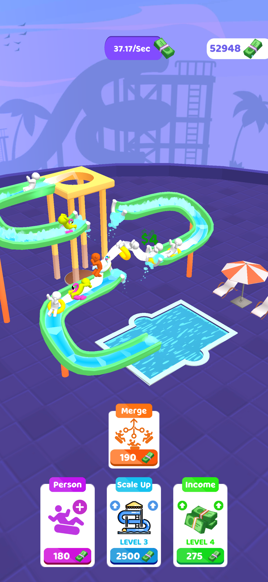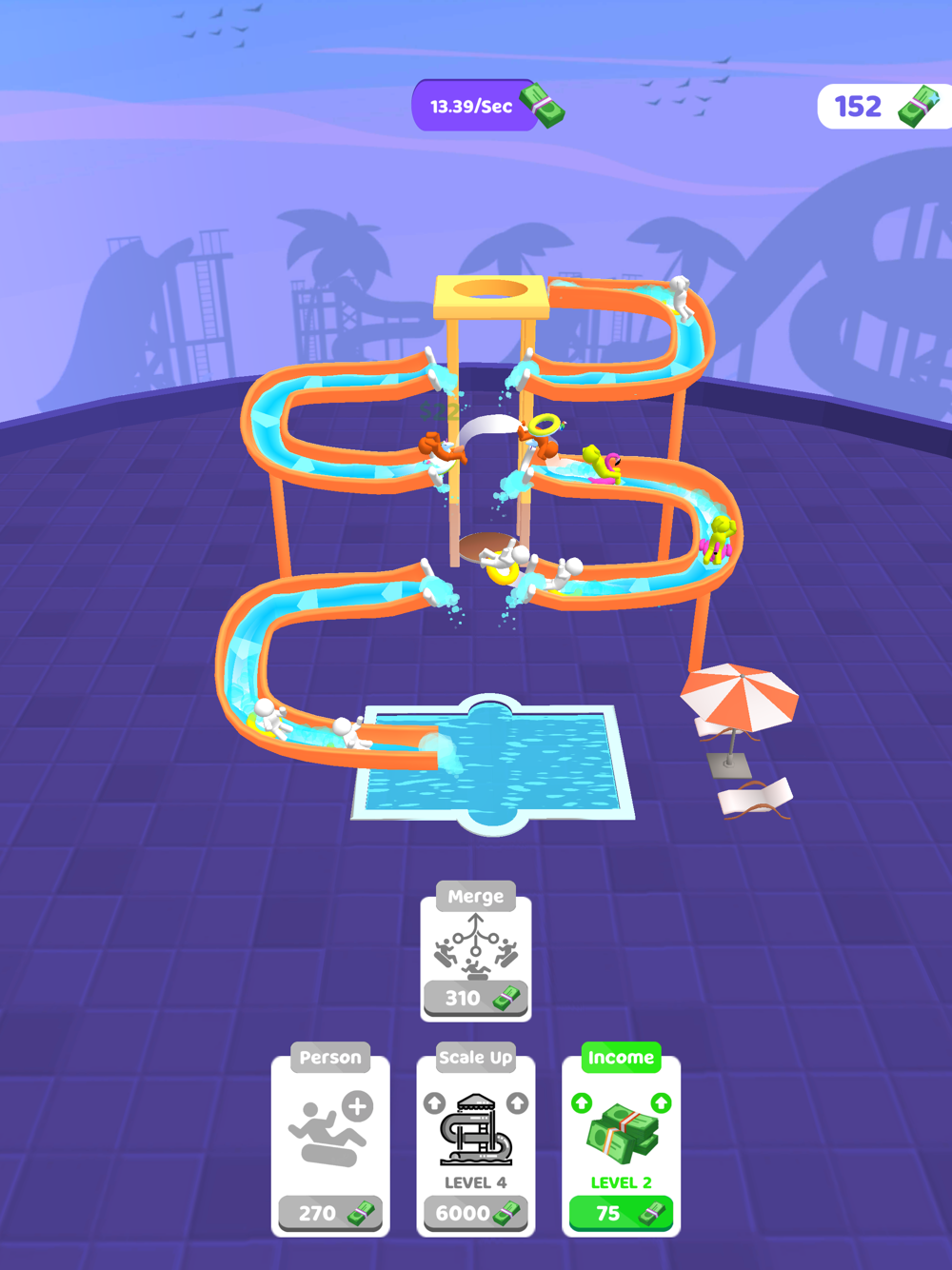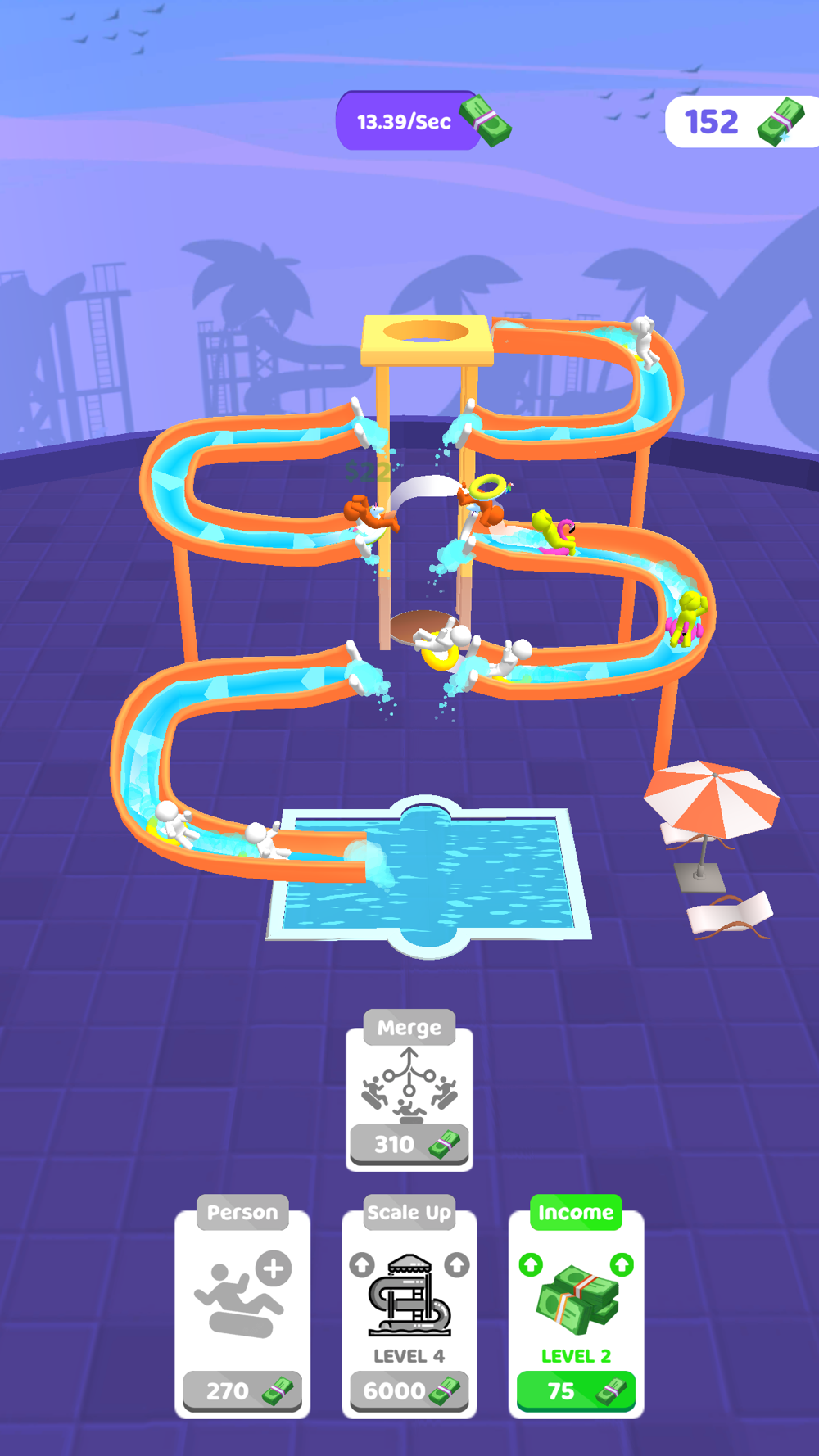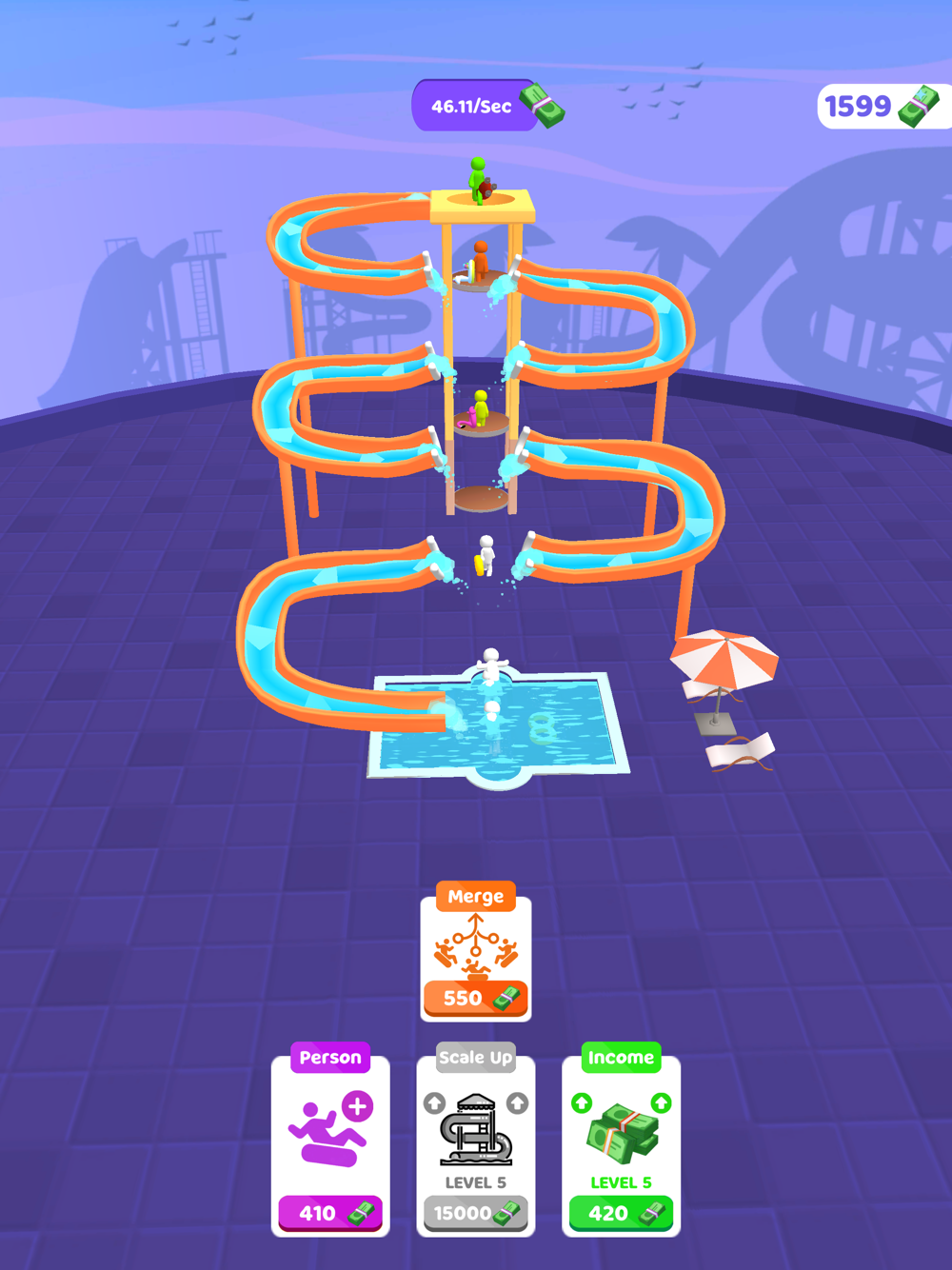 Tap to make them faster! There are jumping points to earn more money! You can youse your money to improve the money that you earn in 1 second by adding new characters, merging them and scaling up the park, and enhancing the income itself!
