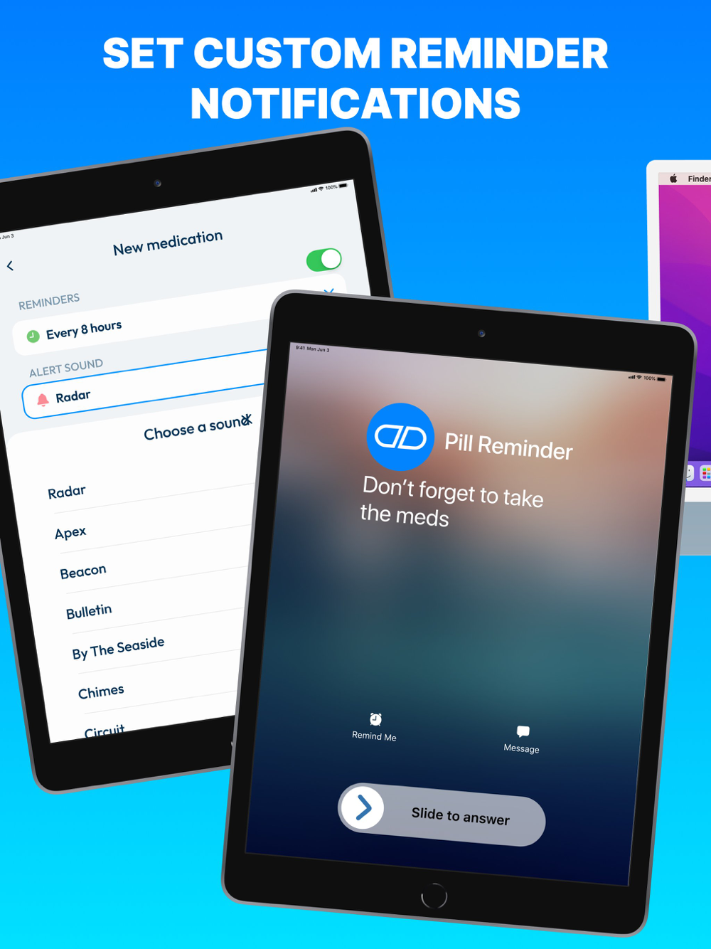 With a few simple steps, you can add medication, get reminders for taking pills, and receive constant tracking of your health progress. Just enter the name of the medicine, the interval between doses, and the time. You can even customize your medications with beautiful colors, photos, or sounds. Download Medicine : Pill Reminder App and never forget about your health!