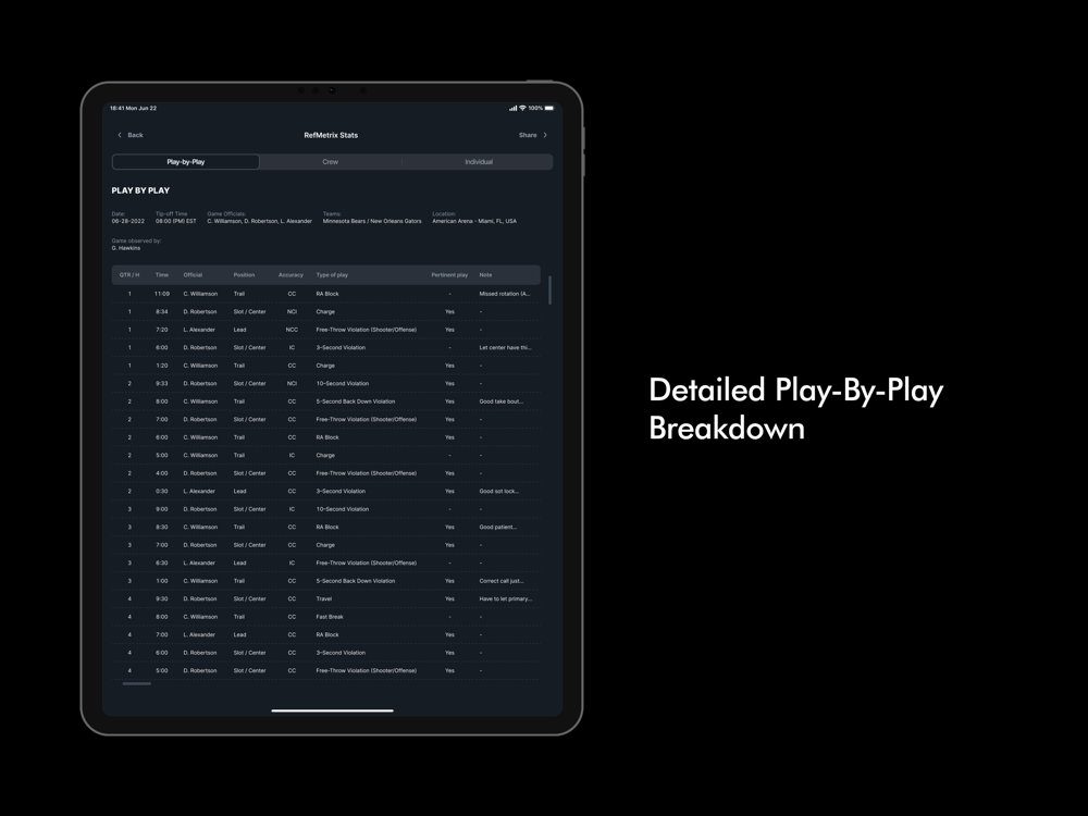 Referees will receive specialized individual & crew RefMetrix Stats following each game. Having consistent access to this type of data provides referees the ability to progress faster and focus on their development.