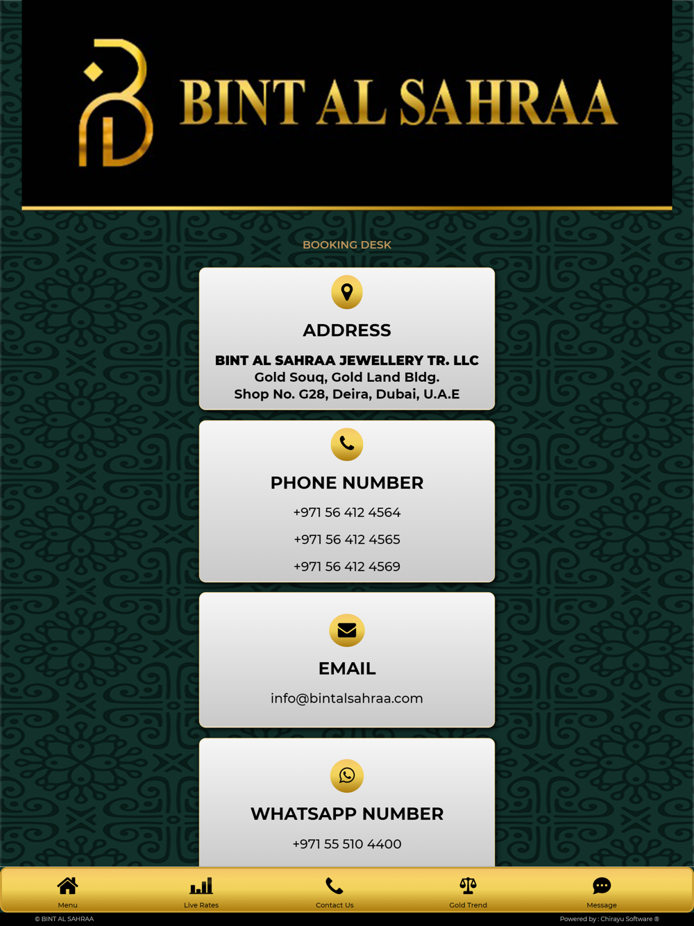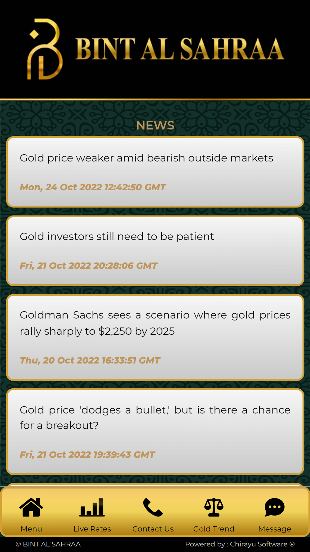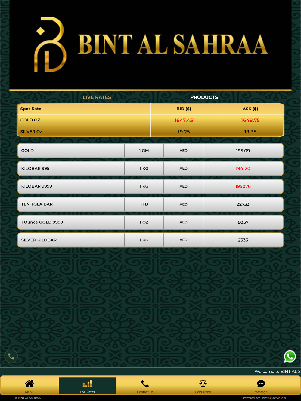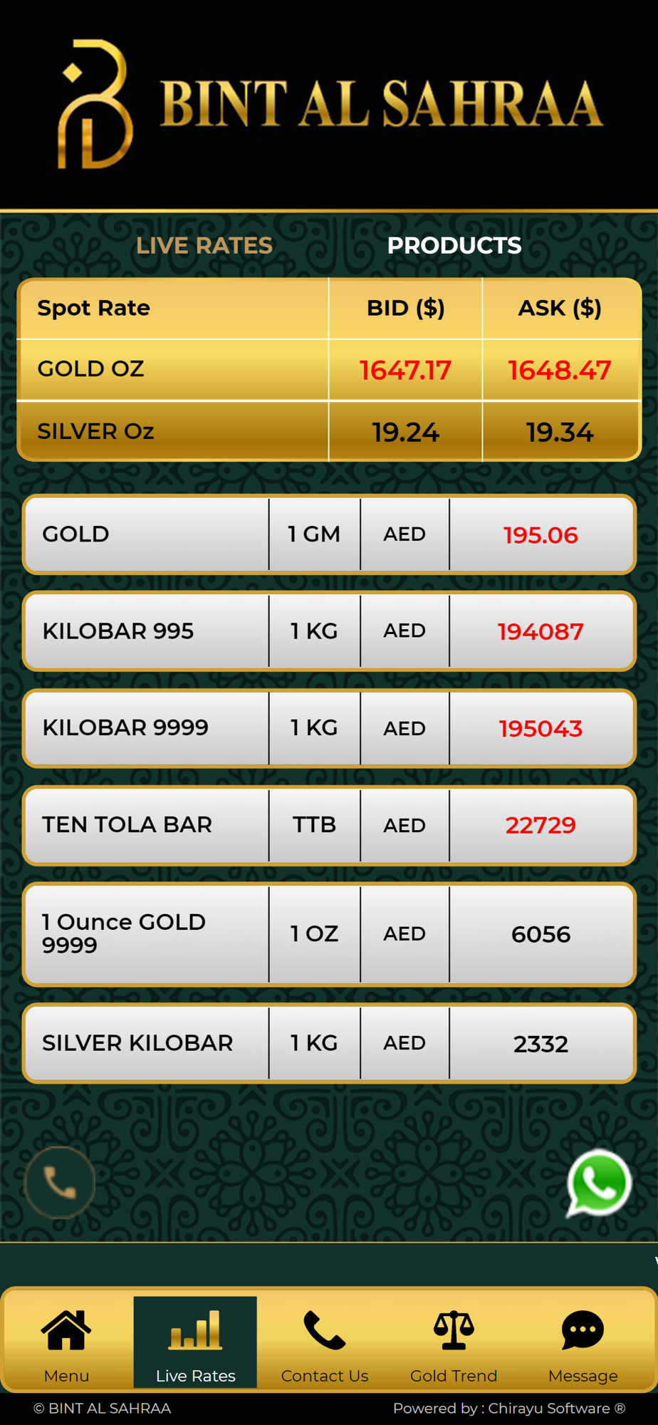 Our app shows the fastest updated LIVE RATES of gold.