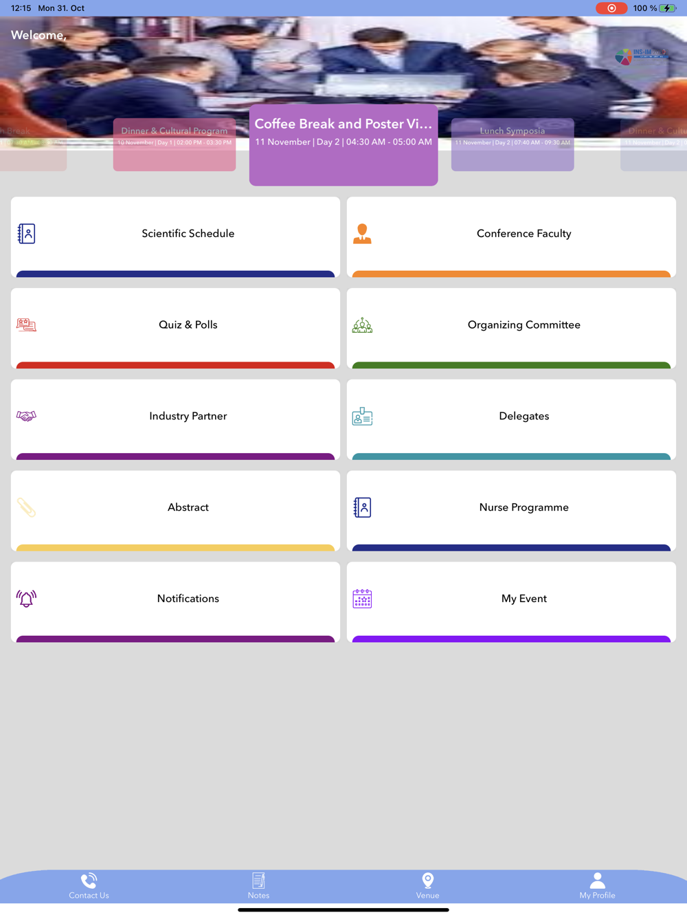 Scientific Schedule – Day wise schedule of events with clickable details