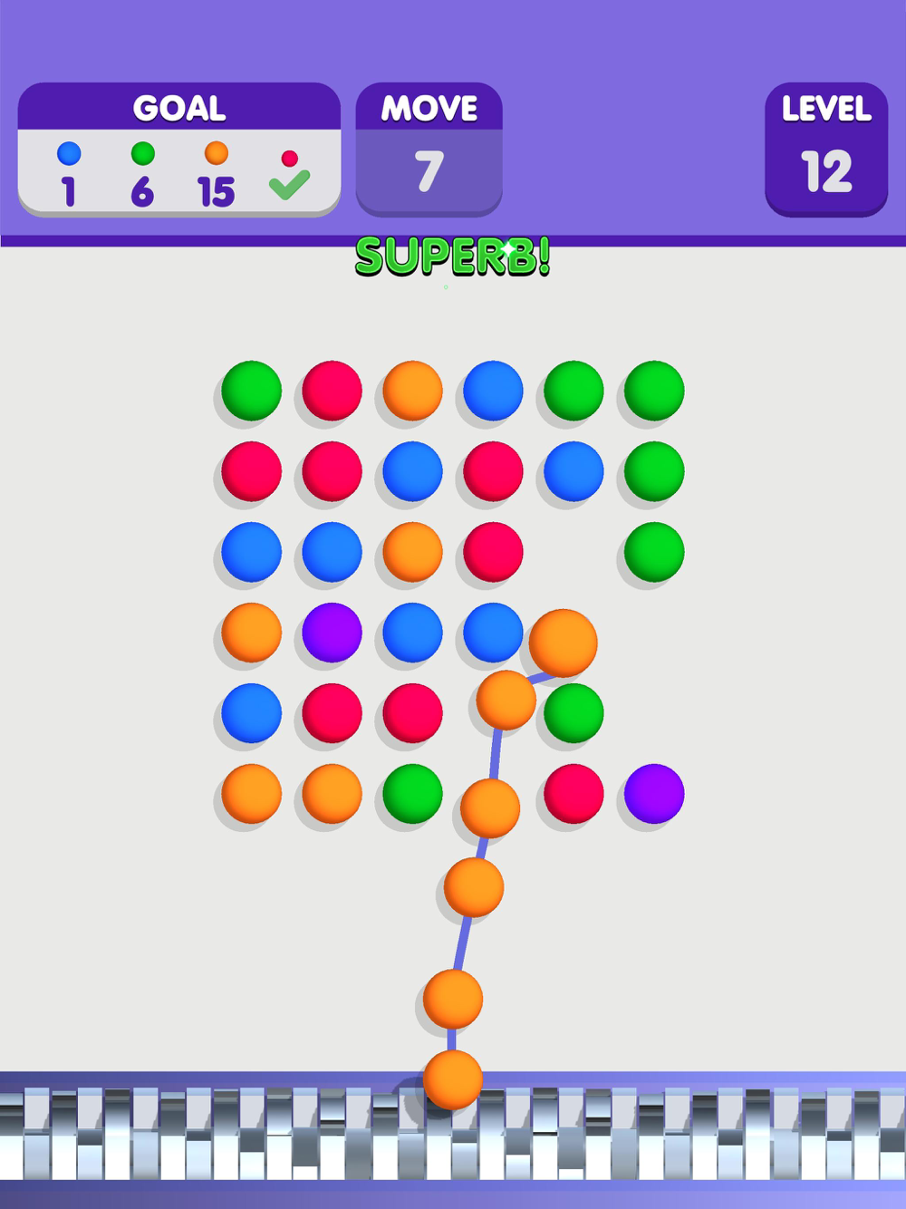 - Collect all same colored balls and destroy to achieve