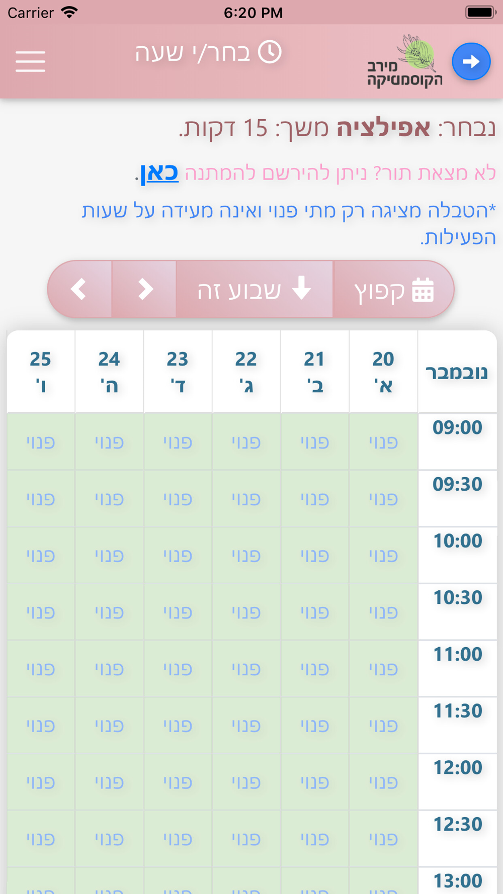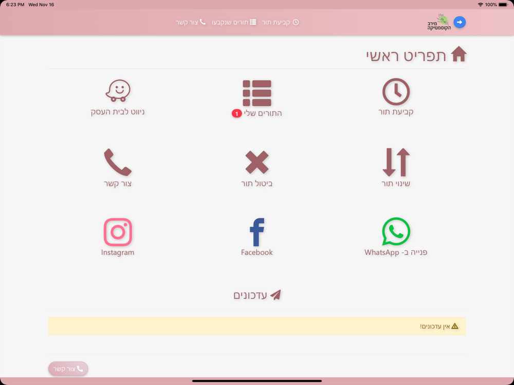 באפליקציה אפשר לקבוע תור, לנווט באמצעות Waze ולפנות אליי באמצעות WhatsApp.