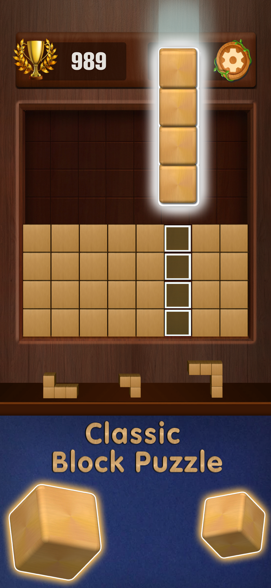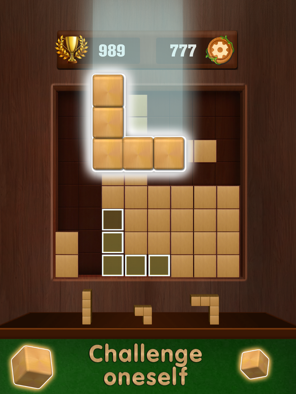 This is a fun & simple block puzzle game! Simply place wooden cube blocks to a 8x8 grid to fill a row or column to earn points. The game will be over if don't have enough space to place the wooden cube blocks.